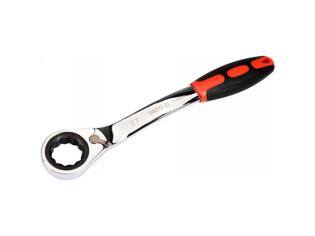 Egy racsnis és hajlított profilú kulcs csavarok kilazítására. Javasolt autószervizek számára.