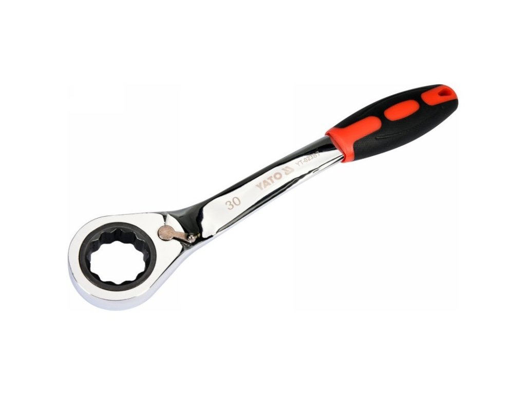 Egy csavarhúzó rátéttel és hajlított profilú kulcs, amely csavarok lazítására lett tervezve. Ajánlott autószervizek számára.