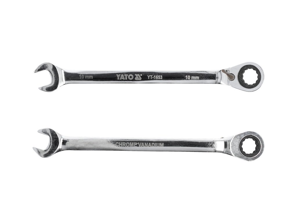 • obojstranná račňa • rozmer: 10 mm • dĺžka: 160 mm • počet zubov račne: 72 • mierka račne: 5° • materiál: CrV