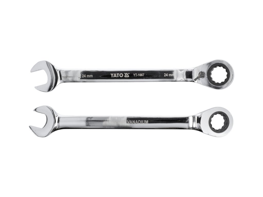 Hviezdicové kľúče s račňou a obojstranným hviezdicovým kľúčom 24 mm / 330 mm 72T CrV YATO