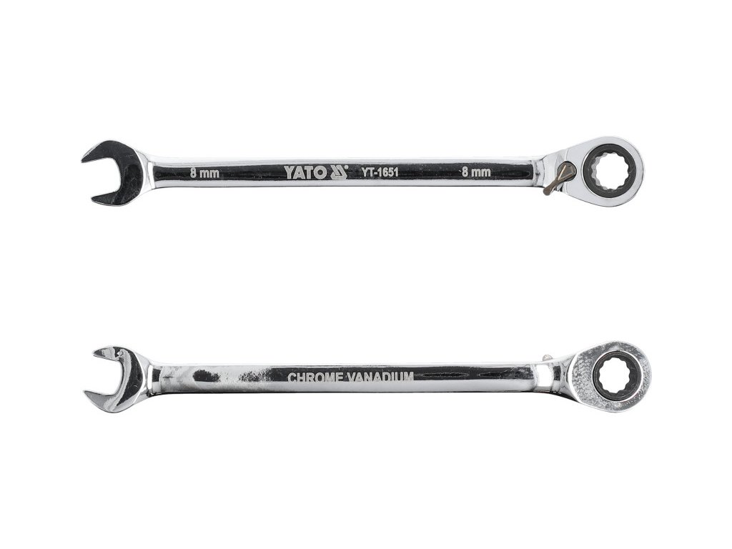 • obojstranná račňa • rozmer: 8 mm • dĺžka: 140 mm • počet zubov račne: 72 ks • mierka račne: 5° • materiál: CrV