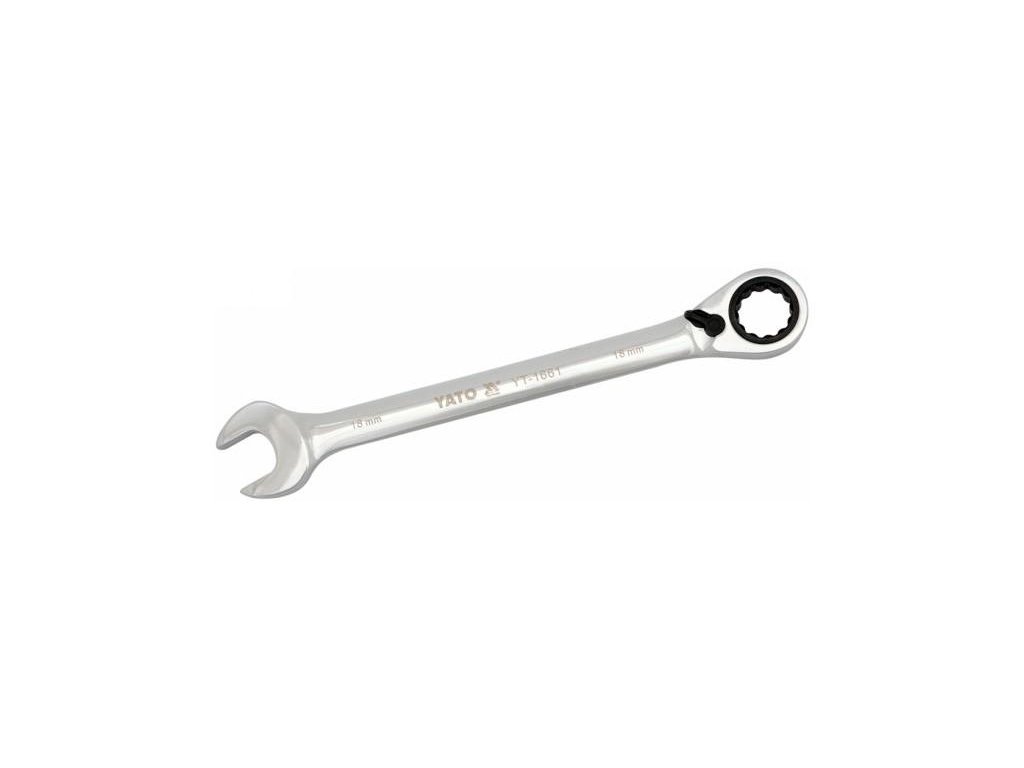 Lapos végű kulcs racsnival és irányváltóval. Autószerelő műhelyek és szervizek számára tervezve.