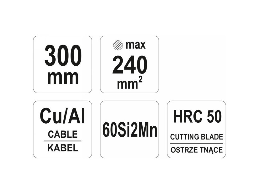 - Lehetőség a drótok vágására, amelyek keresztmetszete akár 240 mm2, és maximális átmérője 17,5 mm