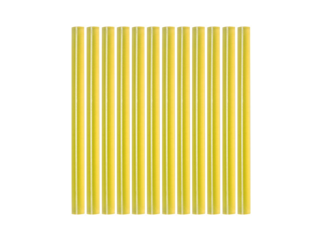 Melegolvasztós ragasztó sárga átmérővel 7.2 mm és hosszúsággal100 mm. A csomagban található 12 ragasztórúd.