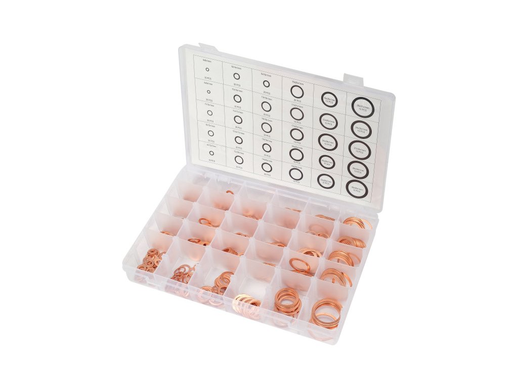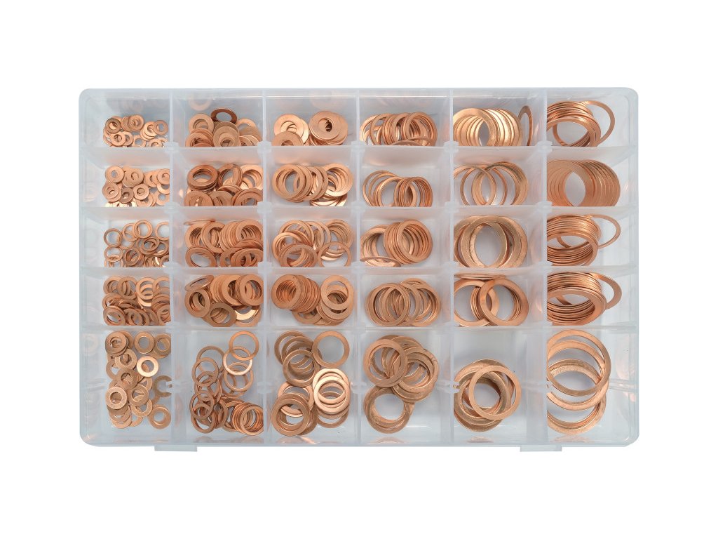 580 db-os réz alátét készlet különböző méretekben: