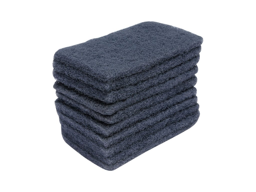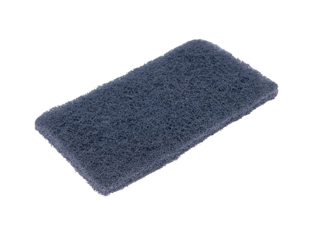 Netkaný materiál z nylonu, s karbidom kremíka, kvalita # 800, rozmer 75x130 mm, sivá farba, pružná, rozpúšťadlám odolná špongia na čistenie medených rúr bez obsahu kovov.