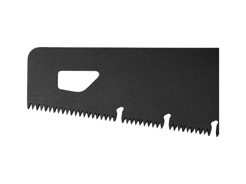 Háromoldalúan élezett fogú fűrészlap, csoportonként 9 fog hüvelykenként. A lapban lévő szakadások megkönnyítik a forgács eltávolítását. Fekete PTFE Teflon bevonat csökkenti a súrlódást. A gumírozott részekkel ellátott zárt fogantyú megkönnyíti a fűrész biztos fogását.