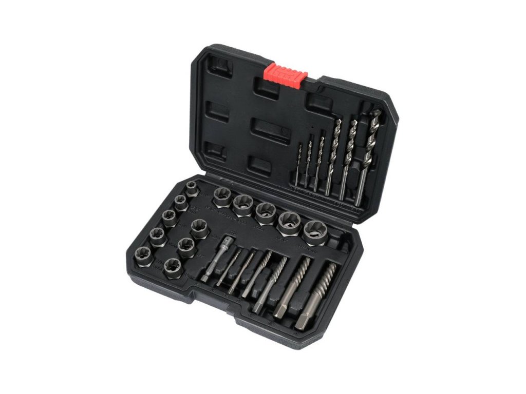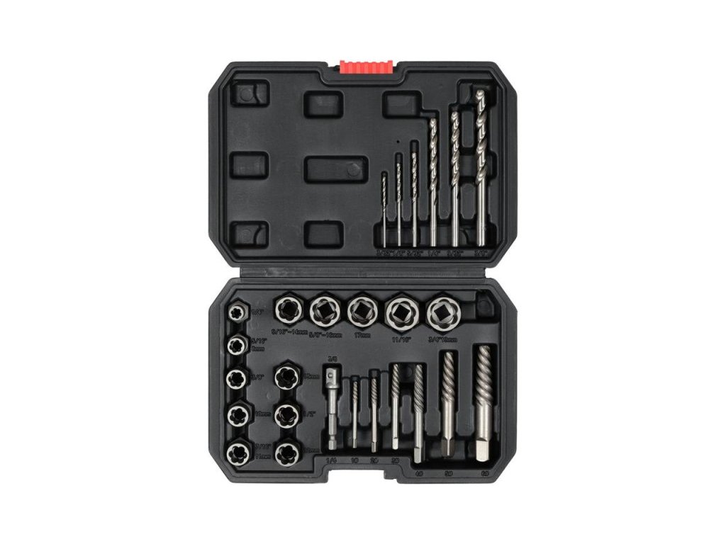 Univerzális 26 darabos csavarkiszedő szett, csavarok, tüskék és anyák kicsavarására tervezve.