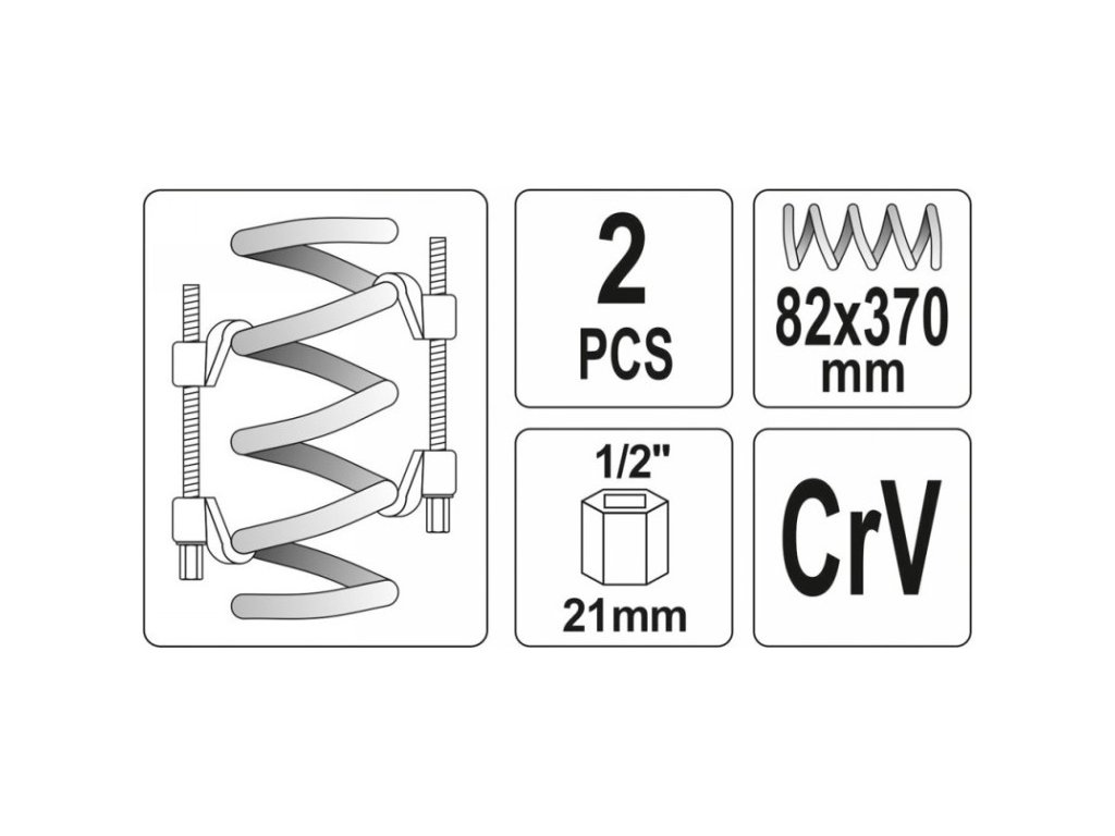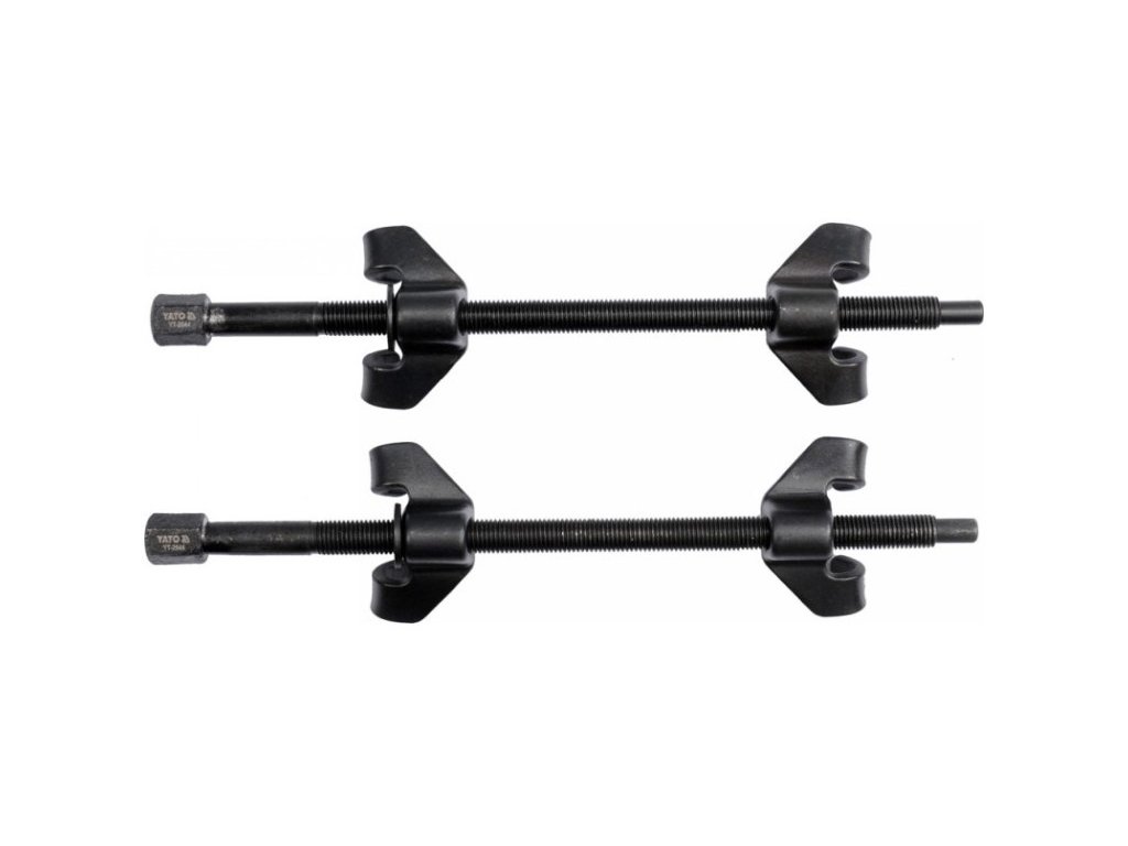 Professzionális rugóhúzók 370 mm hosszúságban, amelyeket a MacPherson oszlopokban és másokban lévő rugók biztonságos és kényelmes szerelésére és eltávolítására terveztek. Elengedhetetlen minden autószerelő műhelyben. A munka biztonságos, köszönhetően a különlegesen kontúrozott, két karos fogantyúknak.