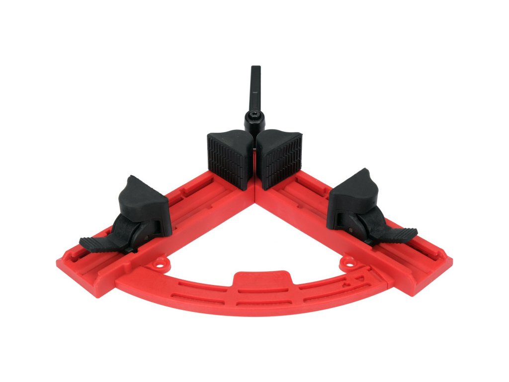 Állítható szögű szorító. A szög 30-90° között állítható. Az beállításokat excentrikus szorítókkal rögzítjük hatékonyan. A szög beállítását egy precíz skála könnyíti meg. A szorító rögzíthető a munkafelületre.