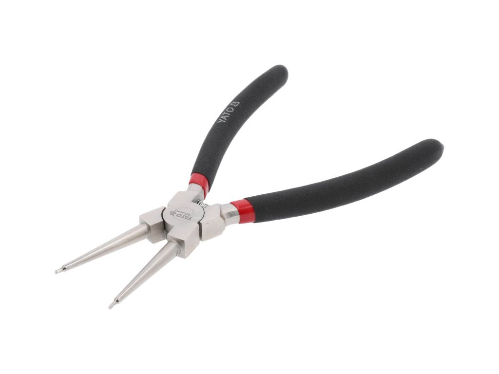 Egyenes belső Seger fogó, 200 mm hosszú, tervezve Seger biztosítógyűrűk behelyezésére és eltávolítására.