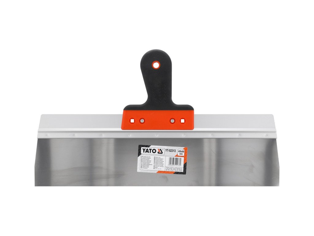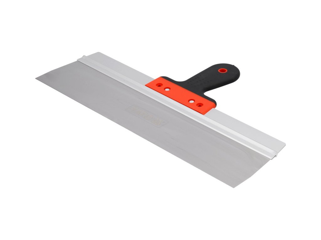A homlokzati glett használható mindenféle vakolási és befejező munkáknál a gipsz tömeg simítására és gyűjtésére. Magas minőségű rozsdamentes acélból készülnek, így ellenállnak a korróziónak. Széles pengéjük optimális rugalmassággal garantálja a falak vagy mennyezetek felületének pontos befejezését. Ergonomikus két-komponensű nyéllel rendelkeznek, minimalizálva a horzsolások kockázatát. & Nbsp; A fogantyú kényelmesen illeszkedik a kézbe, attól függetlenül, hogy jobb vagy bal kézzel használják. & Nbsp; & nbsp; & nbsp; A glettvas pengéje rozsdamentes acélból készül, amelyet tovább erősít a profil többpontos rögzítése, így tökéletes szerszámmerevítést érünk el. & Nbsp; Tartós, stabil és természetes módon merev, simán glettelt felület hatását éri el. További megerősítés többpontos rögzítéssel a profil hosszában. & Nbsp; Kényelmes két-komponensű nyél, amelyet két szegecs rögzít, a penge állandóan be van építve az alumínium profilba, speciális lyukak teszik lehetővé egy csuklós fogantyú felszerelését a meghosszabbításhoz: YT-52317 & nbsp; A rögzítőlyukak tengelyirányú távolsága-93mm Flexibilis penge rozsdamentes acélból munkaszélesség-450mm Teljes magasság-250mm pengemagasság-90mm vastag lemez vastag Alumínium profil vastagság-2mm SÚLY-420G