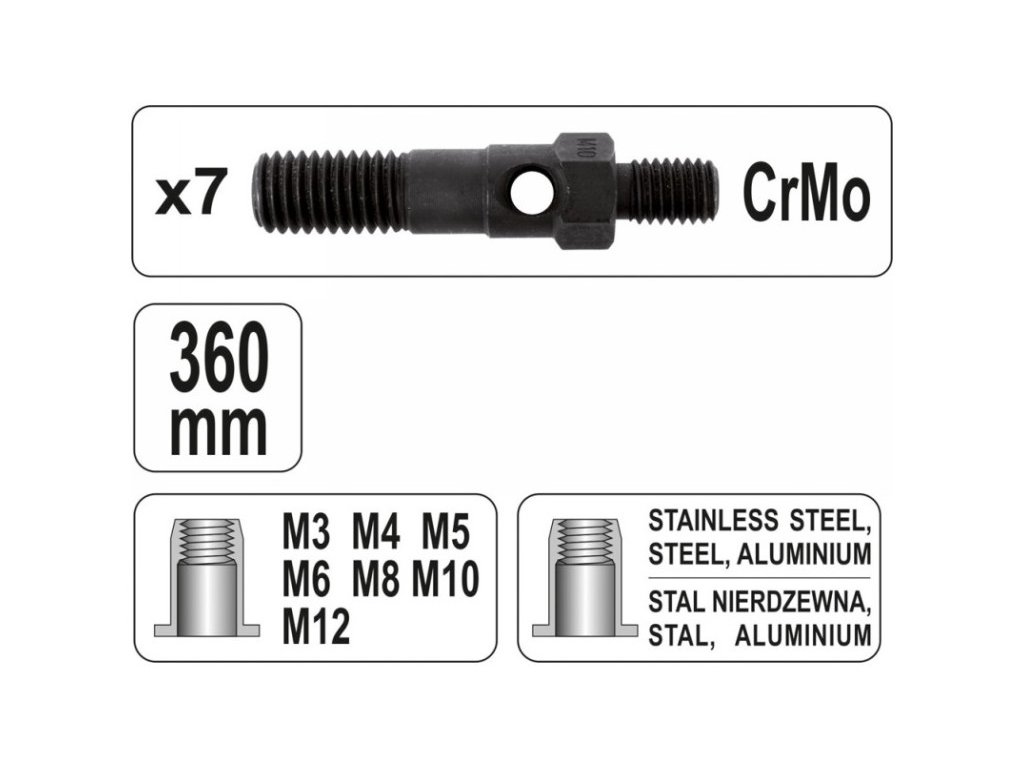 YATO skrutkovač nitovacích matíc 360 mm M3, M4, M5, M6, M8, M10, M12
