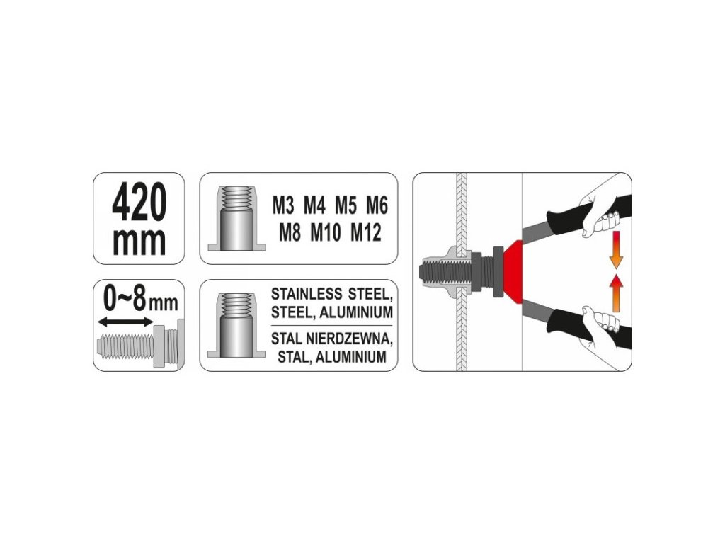 YATO nitovacie kliešte 420 mm M3, M4, M5, M6, M8, M10, M12