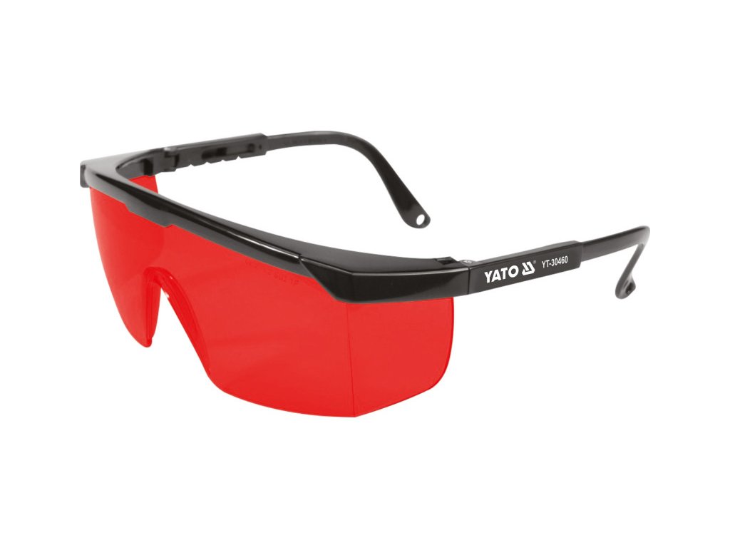 Piros szemüveg, amelyet olyan lézerekhez terveztek, amelyek piros fényt (pontokat vagy vonalakat) bocsátanak ki.