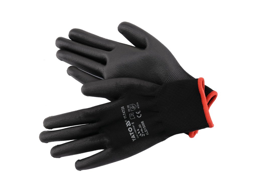 Montážne rukavice YATO (máčané ČIERNA) veľkosť 8