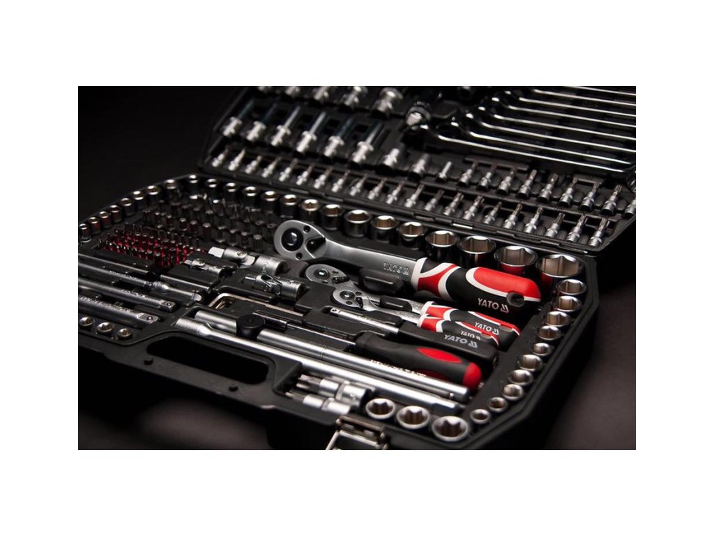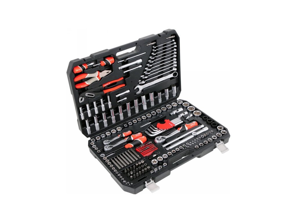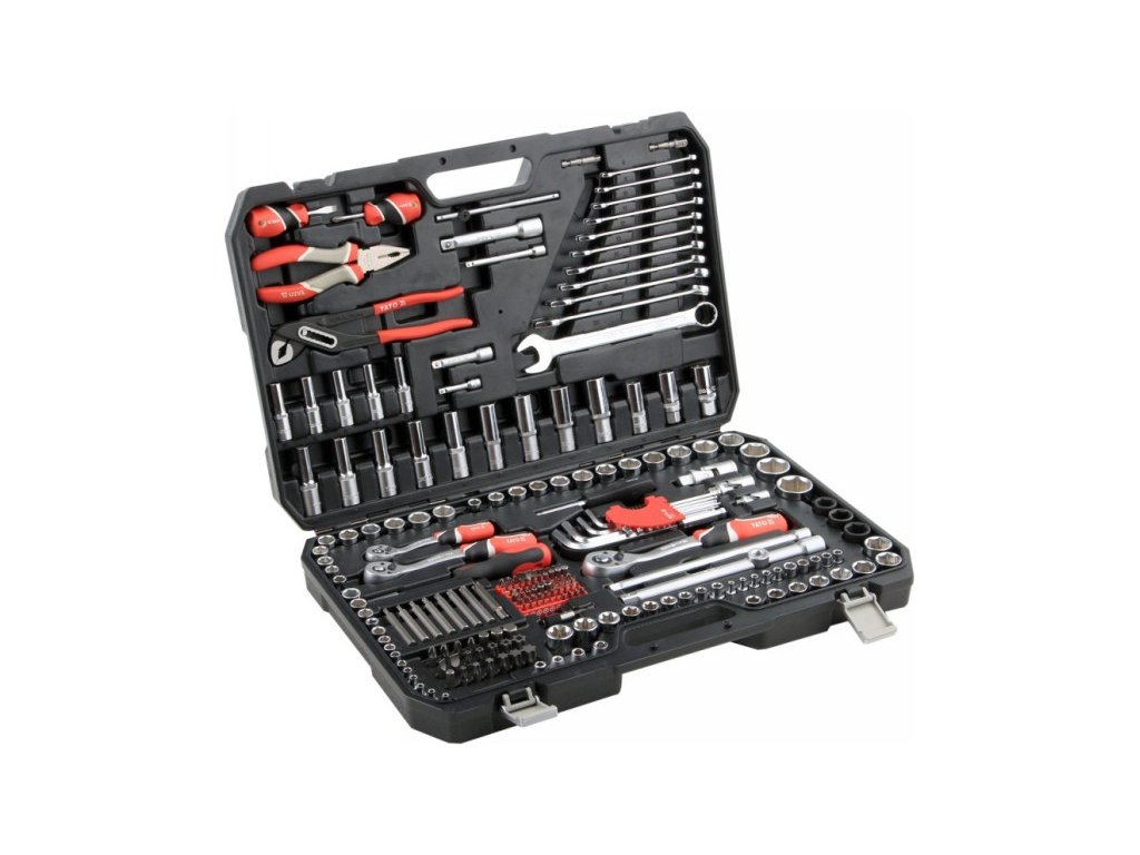 A Yato szerszámkészlet 225 elemből áll, amelyeket egy praktikus műanyag dobozban helyeztünk el. A szerszámokat pontosan anyagokból készítettük, amelyek megbízhatóságukat garantálják.