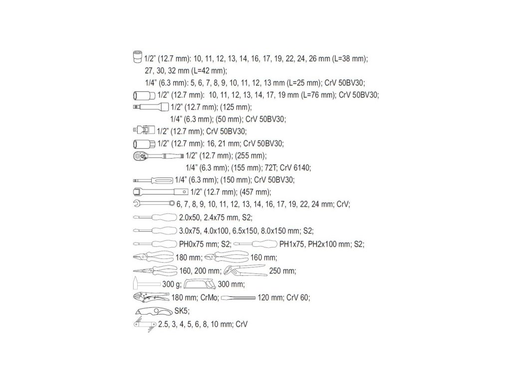 Professzionális, 79 részes szerszámkészlet, amelyet speciálisan az autóipari és mechanikai szerviztechnikusok igényeinek kielégítésére fejlesztettünk ki.