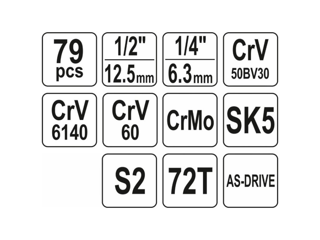 Gola sada 1/2´, 1/4” + príslušenstvo 79 ks