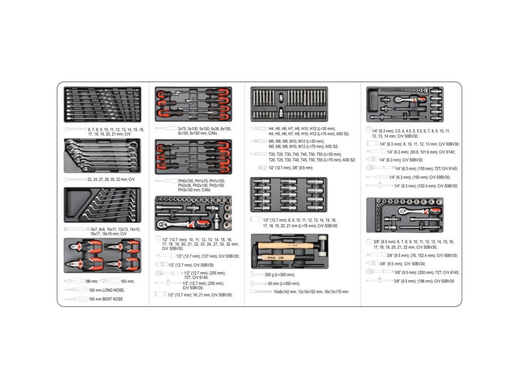 Dielenský vozík s náradím, 6 zásuviek, 177 kusov, 975 x 765 x 465 mm,