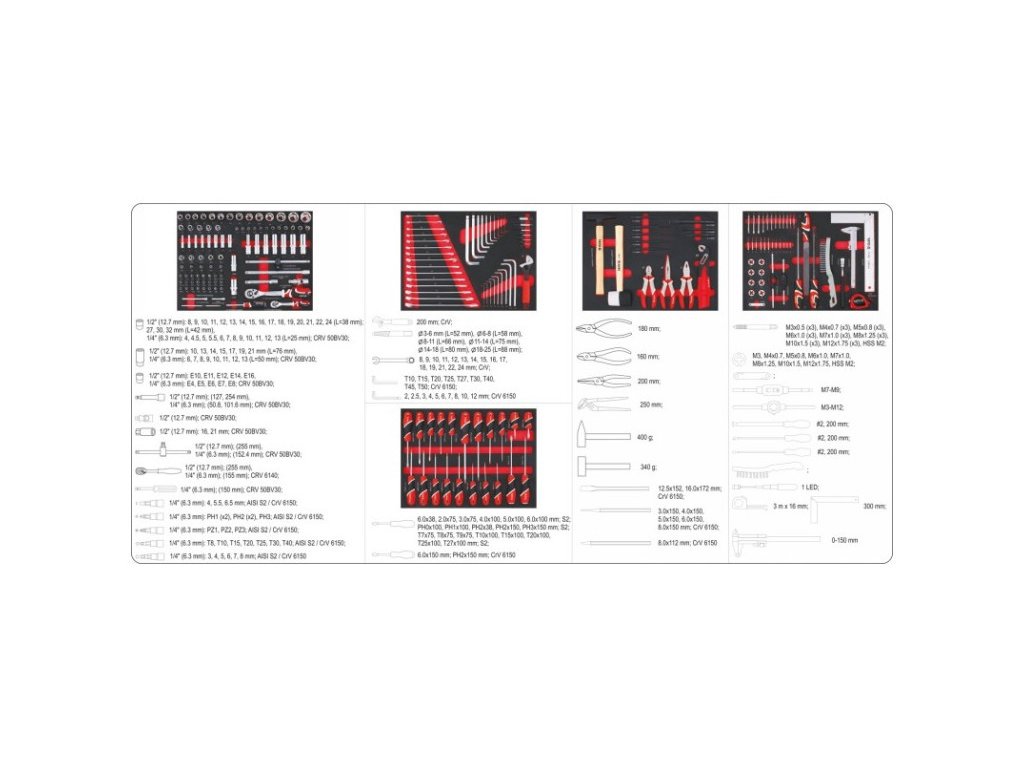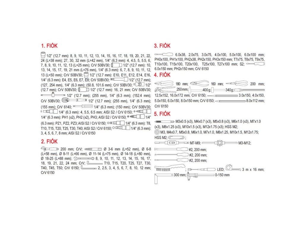 - Az első 5 fiók 211 gondosan kiválasztott szerszámot tartalmaz