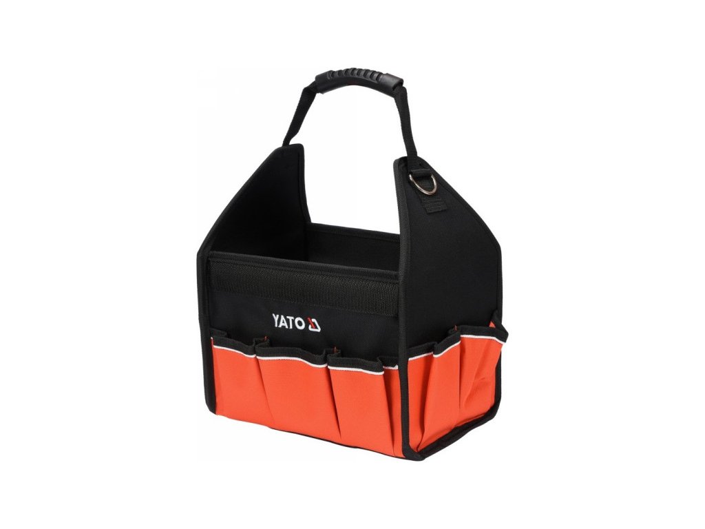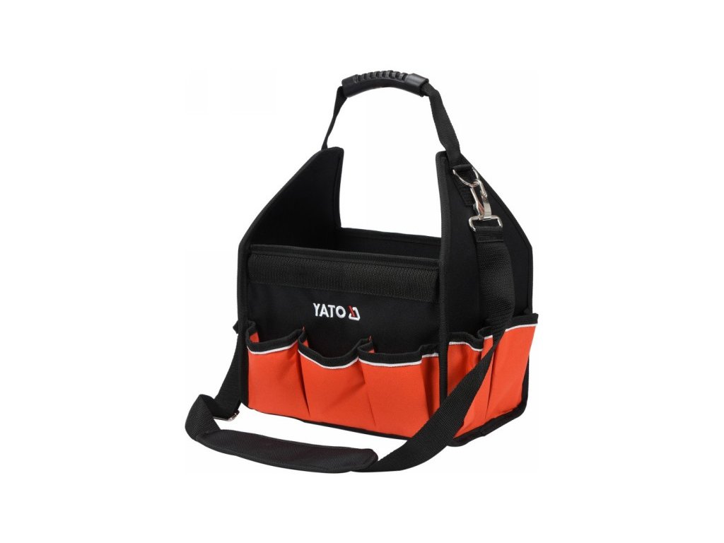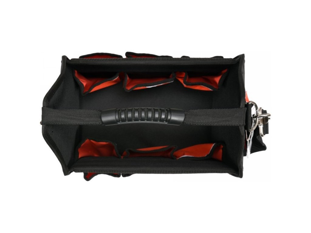 A táska nyitott profilja gyors hozzáférést biztosít a tárolt szerszámokhoz