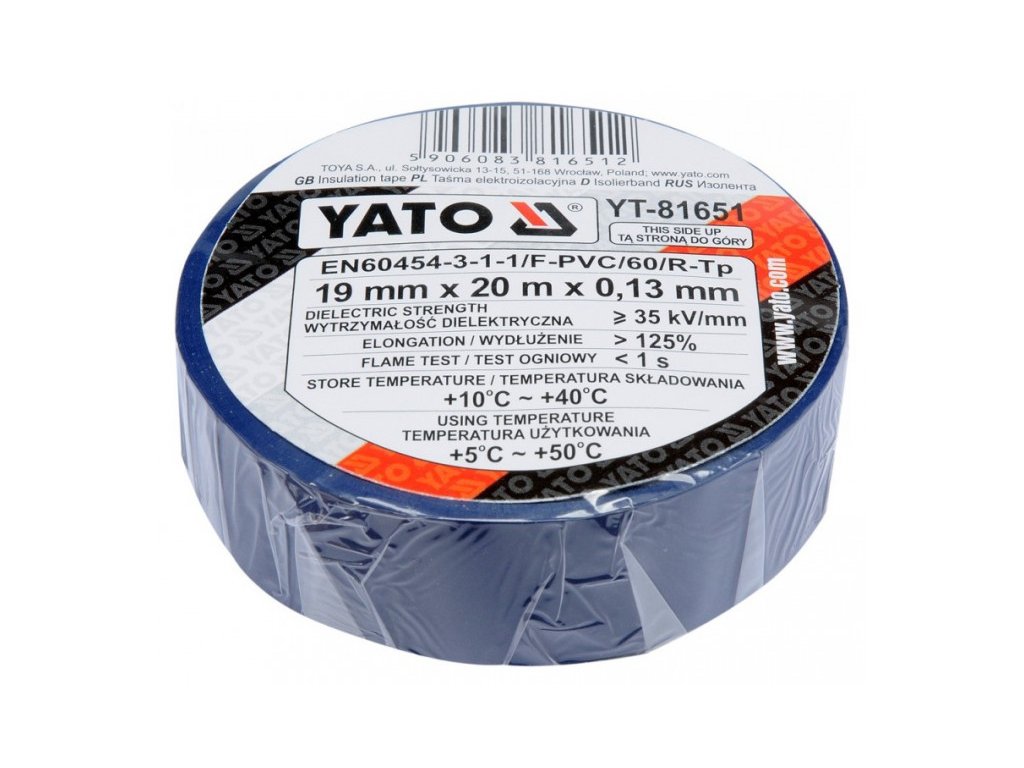 Izolačná páska 19 x 0,13 mm x 20 m modrá YATO