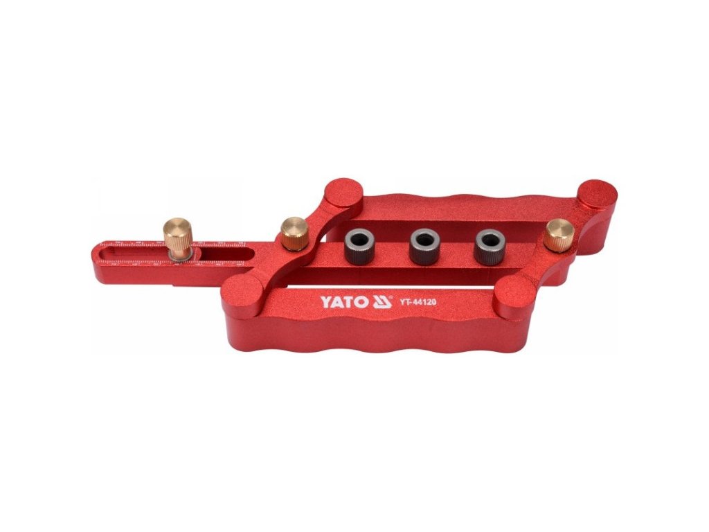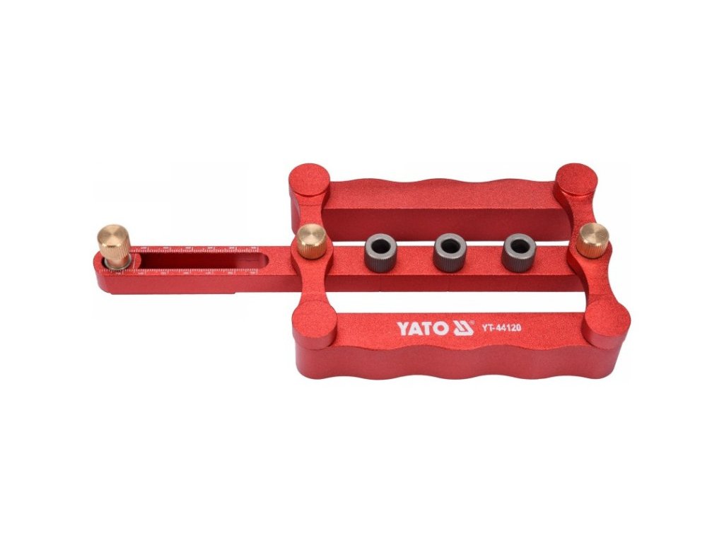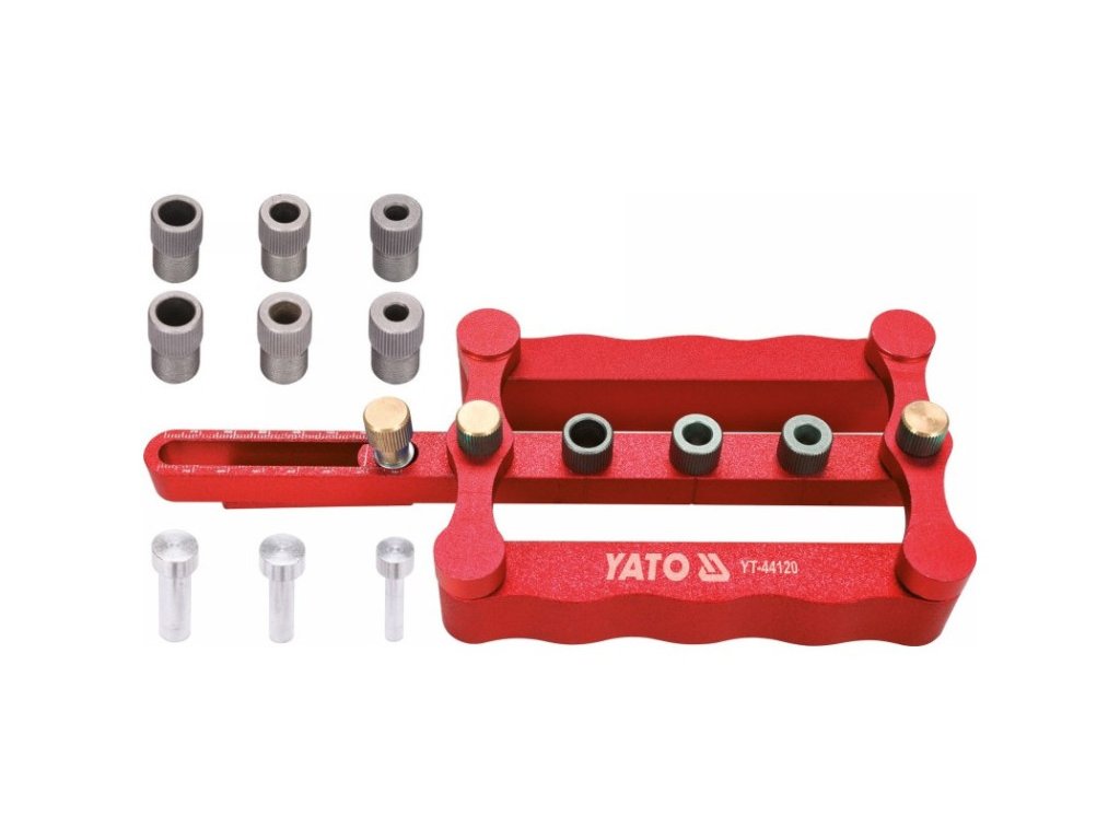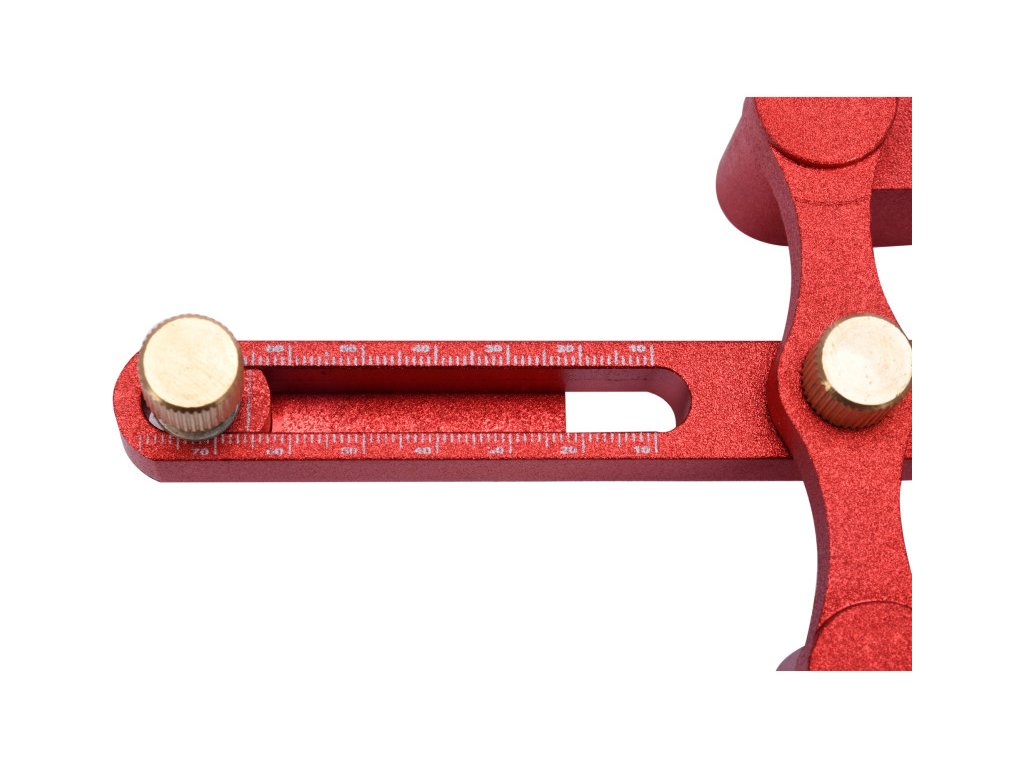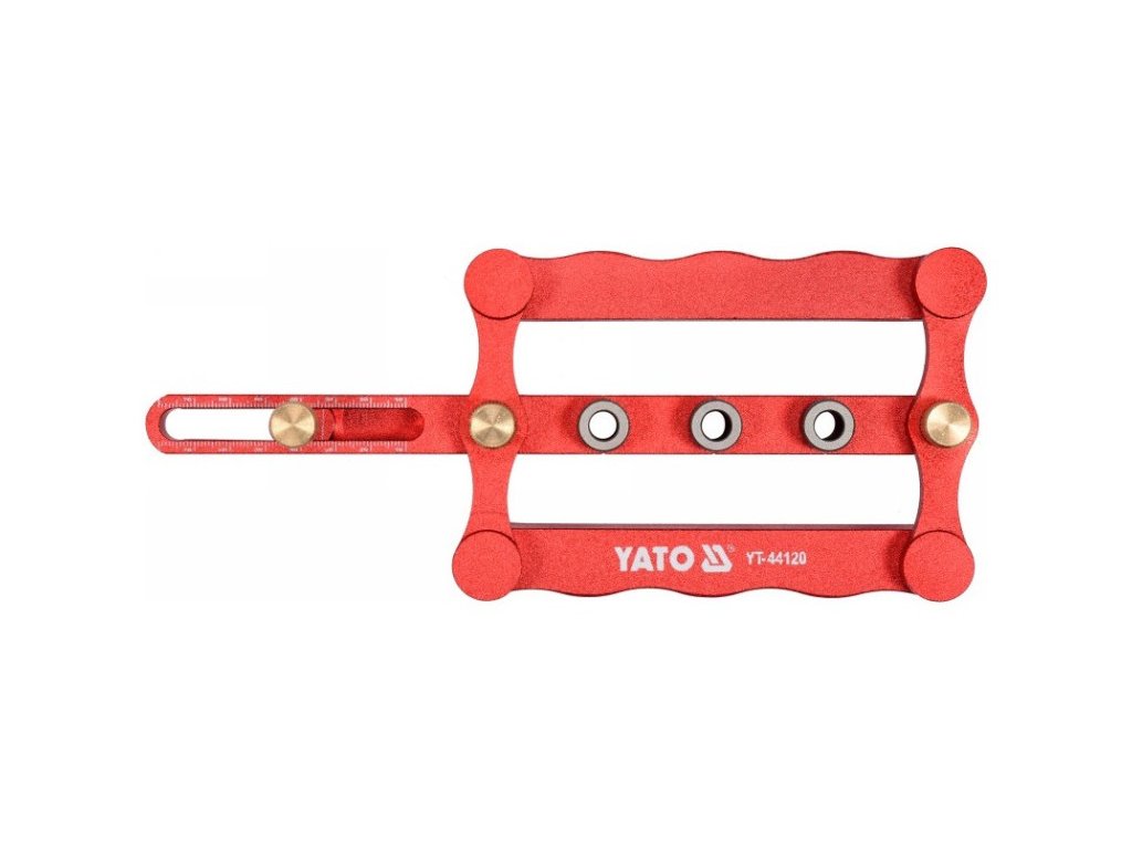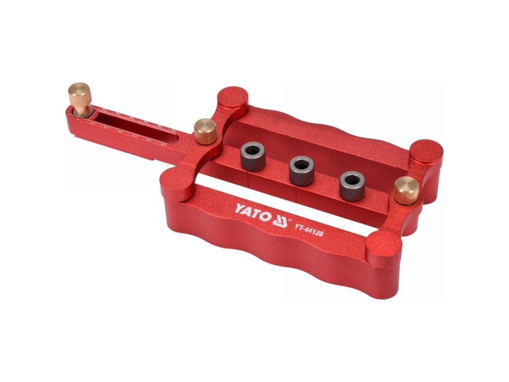 Univerzális eszköz furatok helyének megjelölésére kötőelemekhez, például bútorlapok összekötéséhez. Az eszköz jelzi a lapok szélénél található középpontot, 17-től 50 mm-ig. A sablon konstrukciója lehetővé teszi a furatok készítését nem csak a széleken, hanem a lap síkján is. Az eszköz alumínium-alapú ötvözetből készült, a testbe csavarozott 6, 8, 10 mm átmérőjű rögzítő hüvelyek pedig edzett acélból. Egyszerű, hatékony és pontos eszköz professzionális felhasználóknak és igényes barkácsolóknak. Furatok készítésére kötőelemekhez, lapok összekötéséhez. Csavarja be az acéltestbe a középpontozó hüvelyt a használt dugók átmérőjével, helyezze a sablont a lap szélére vagy a lap síkjára, és fúrja ki a lyukat. A csomag tartalmazza a sablont, az acél hüvelyeket 6,8,10 mm átmérőjűvel 3 db, valamint a dugókat 6,8,10 mm átmérőjűvel 3 db.