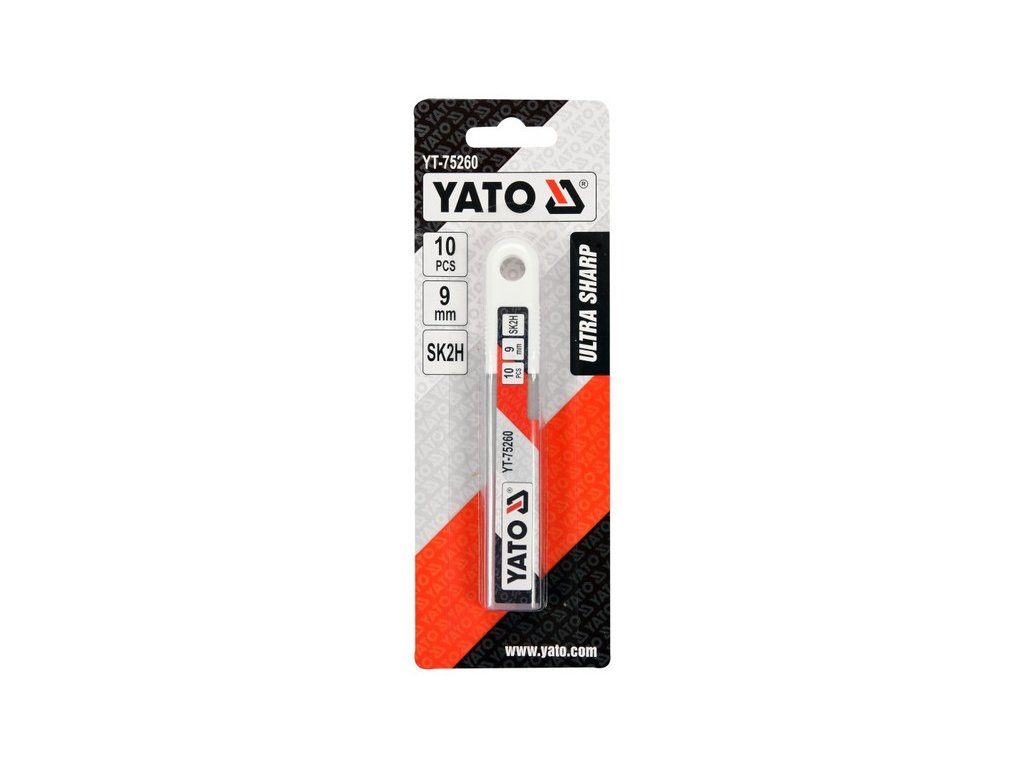 Cserélhető pengék 9 mm Yato YT-75260 márka, Ultra Sharp SK2H acélból készült. 10 darabos csomagolásban.