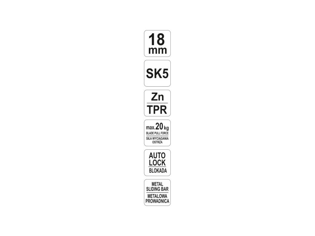Továbbá "automatikus zár" rendszerrel rendelkezik, amely megvédi a pengét a véletlen kilövés vagy visszahúzás ellen munka közben, 20N-ig terjedő erővel szemben. Az "automatikus zár" rendszernek köszönhetően a kés tökéletes vastag anyagok vágásához vagy szűk résekben, ahol fennáll a veszélye a penge elakadásának.