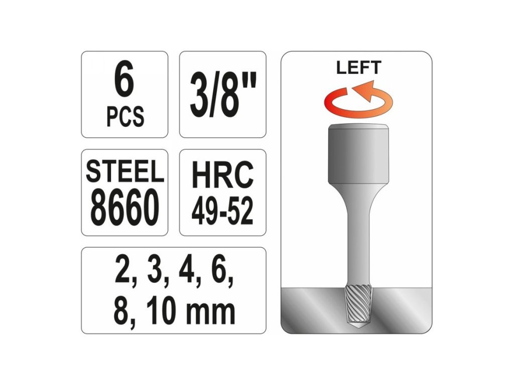 Technické údaje Materiál oceľ 8660 Priemer (mm) 2 / 3 / 4 / 6 / 8 / 10 Tvrdosť 49-52 HRC Počet kusov v sade 6