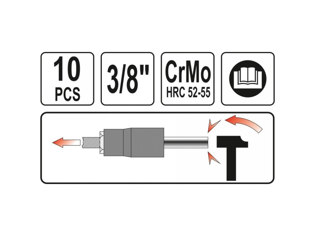 YATO Sada špirálových hlavíc 10 kusov 3/8" 10-19 mm