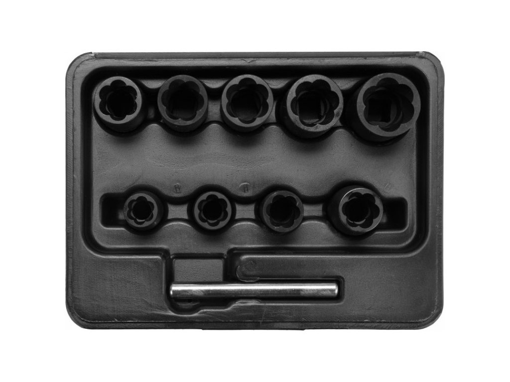A sérült, megmunkált csavarokhoz, anyákhoz méretben 10, 11, 12, 13, 14, 15, 16, 17 és 19 mm speciális alakú foglalatok vannak, amelyek a sérült csavar vagy anya megragadását teszik lehetővé, így a sérült rész kicsavarható.
