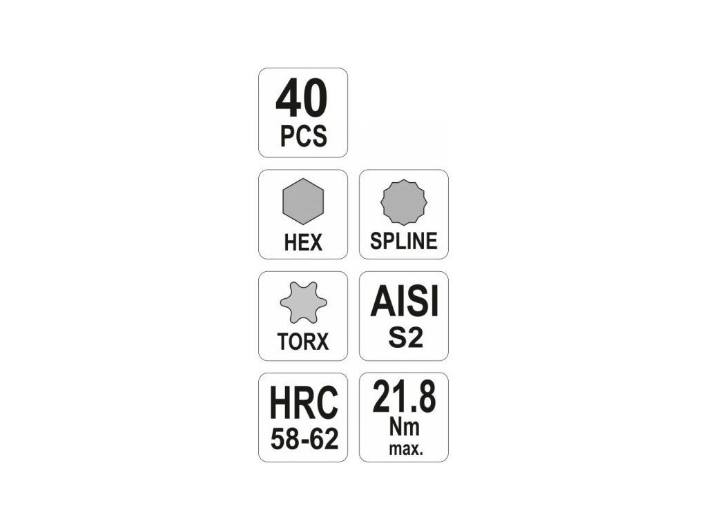 YATO Sada bitov Torx a imbusových bitov 40 kusov (1/2"-3/8" H4-H12, M5-M12, T20-T55)