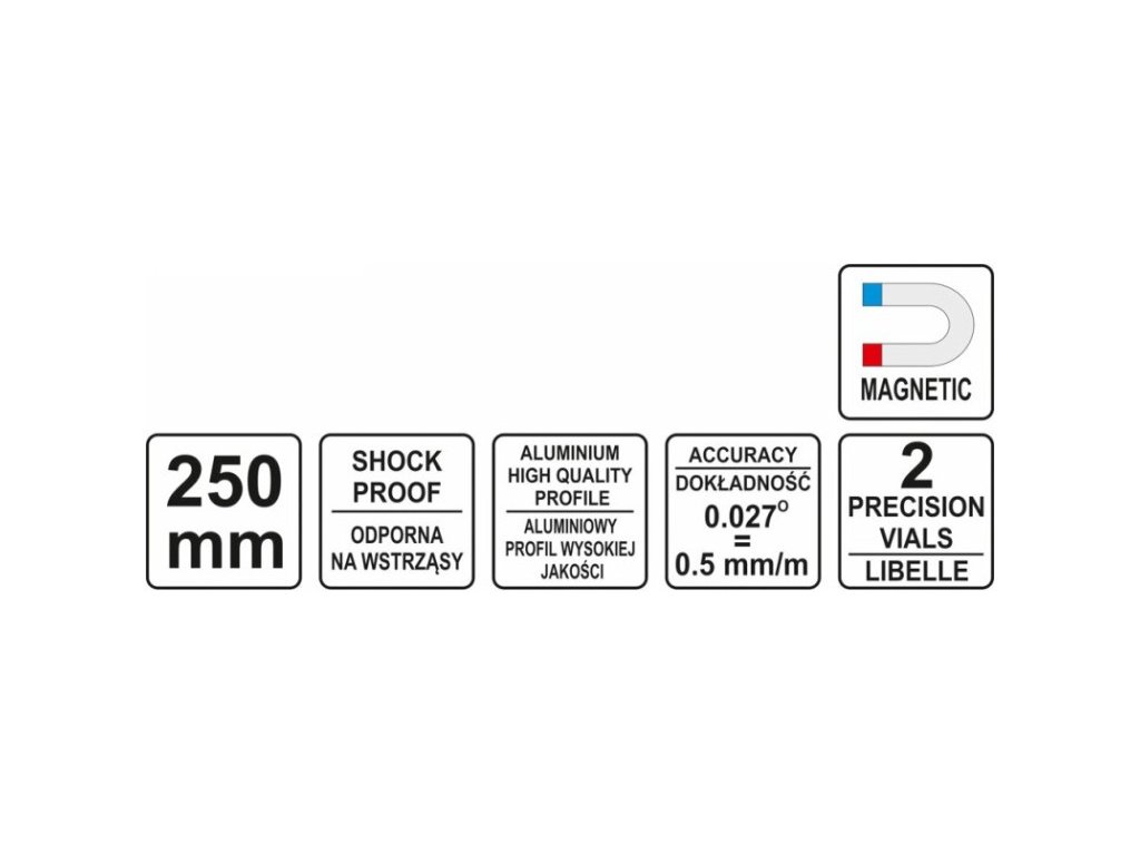 Trapézová vodováha 2 vodováhy 250 mm YATO
