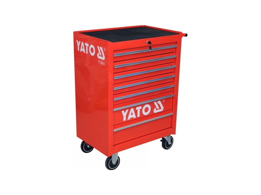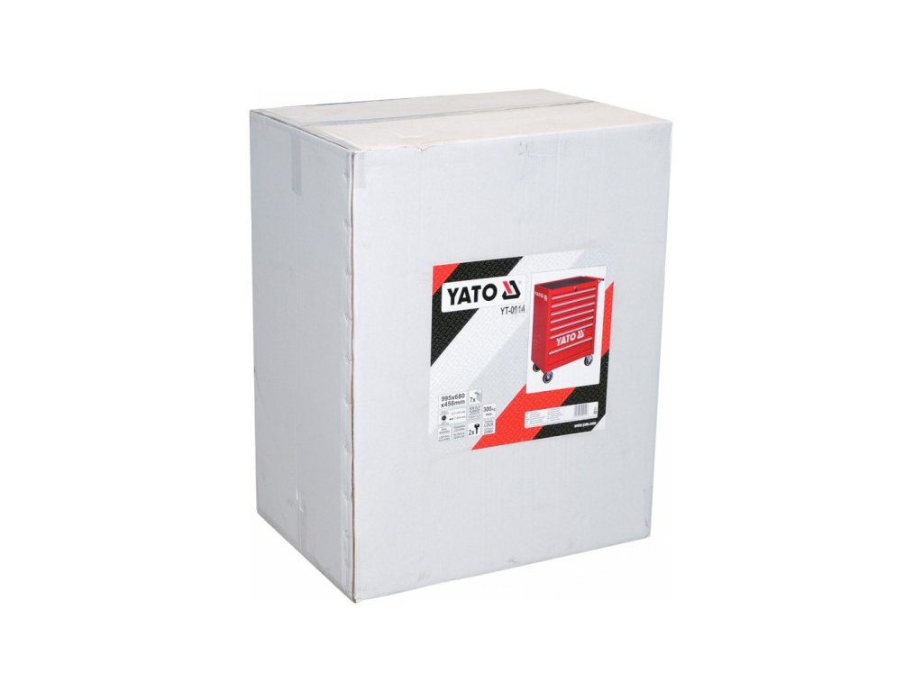 • 995x680x458 mm • Profily z oceľového plechu • Centrálny zámok s 2 kľúčmi • Kolieska s priemerom 125 mm, dve brzditeľné • 7 zásuviek s guľovými vodiacimi lištami, vystlané penou • Veľkosti zásuviek: 5 ks 50x580x400 mm, 2 ks: 130x580x400 mm • Stolová doska odoláva aj olejuvzdorná guma pre zaťaženie do 300 kg.