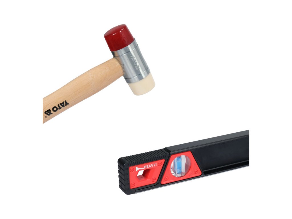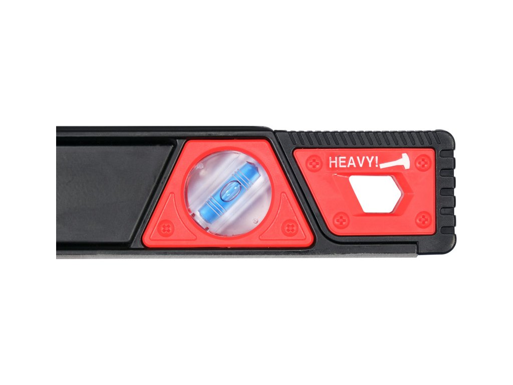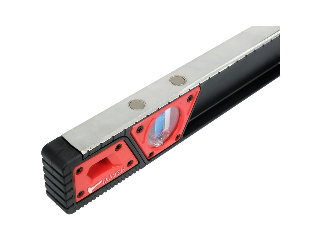 Robusztus, ütésálló alumínium szintező. Két nagy fogantyúja van, ami megkönnyíti a mérés végzését. A szintező végét rugalmas, ütésálló ütközők védenek, lehetővé téve a kalapáccsal való ütést. A szintező három légbuborékkal van felszerelve: függőleges, vízszintes, 45 fokos. Az esztergált alapban 5 mágnes található.