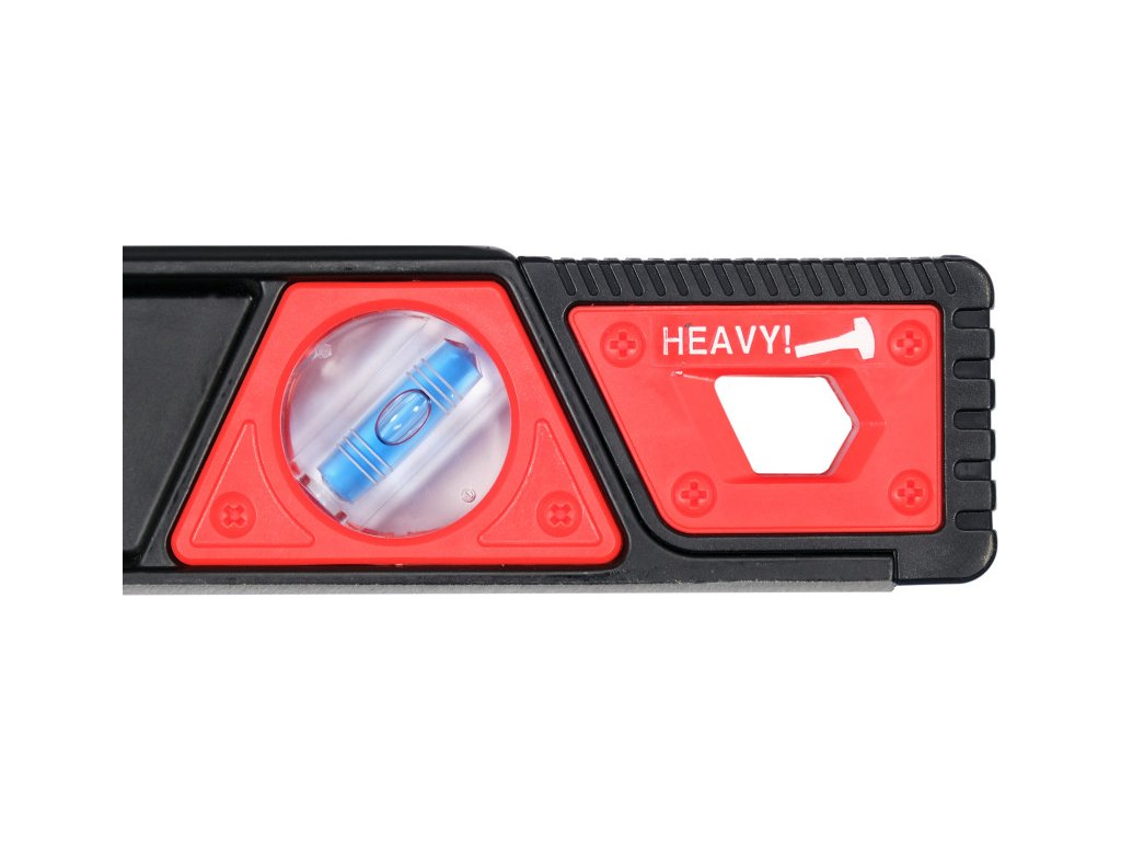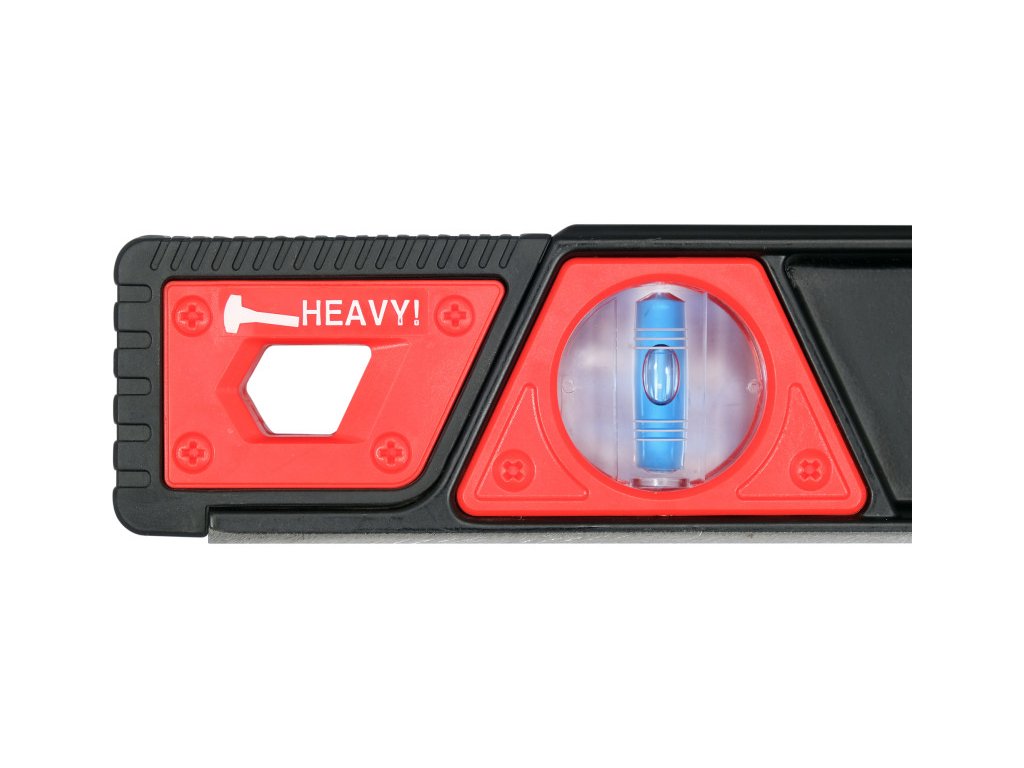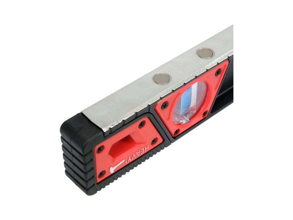 Robosztus, ütésálló alumínium szintező. A két nagy fogantyú segítségével könnyedén elvégezhetőek a mérések. A szintező végét rugalmas, ütésálló puferek védelmezik, lehetővé téve a kalapáccsal való ütögetést. A szintező három buborékkal rendelkezik: függőleges, vízszintes, 45 fokos. Az esztergált alapon 5 mágnes található.