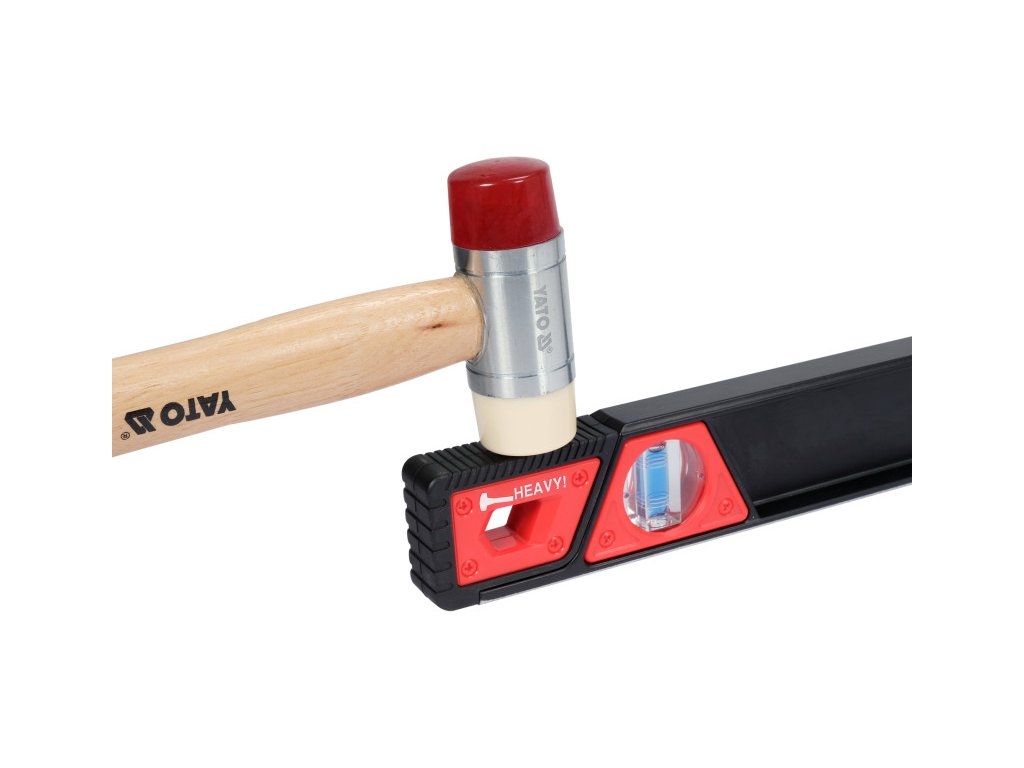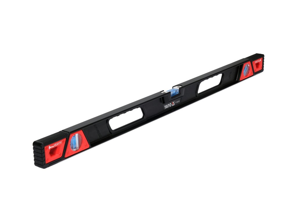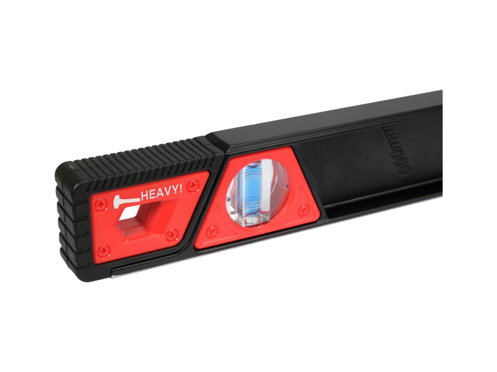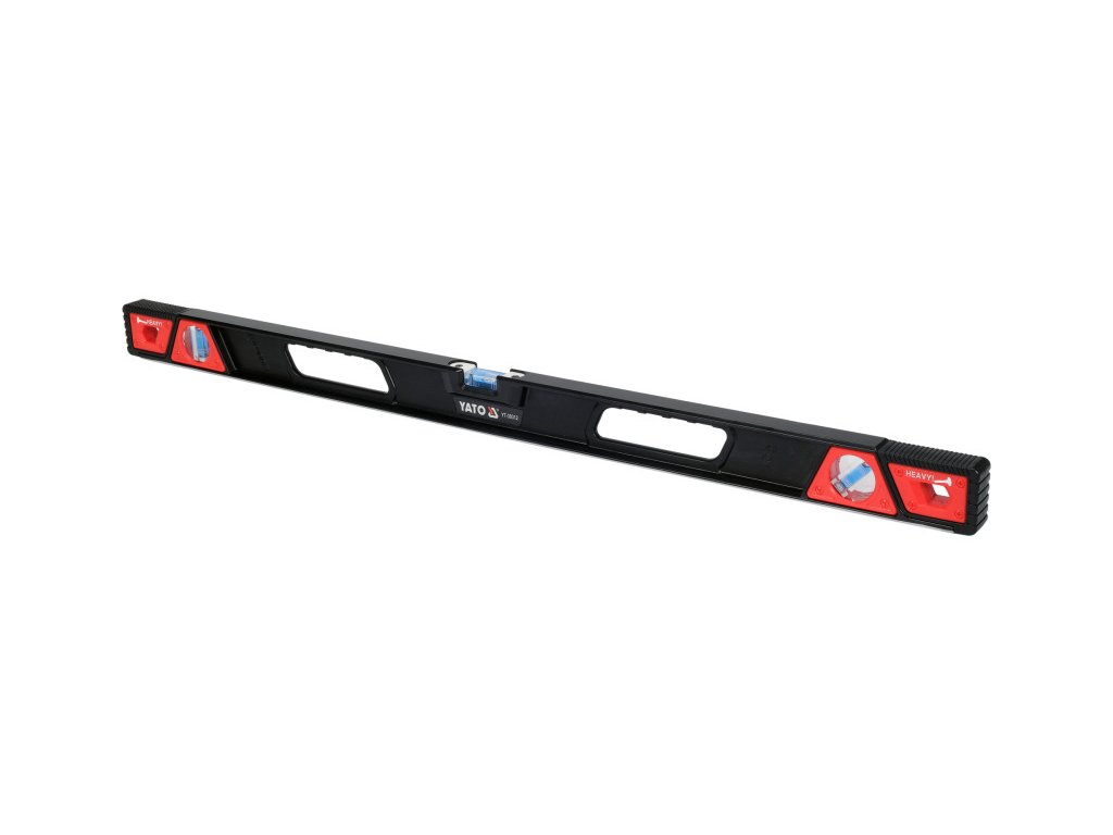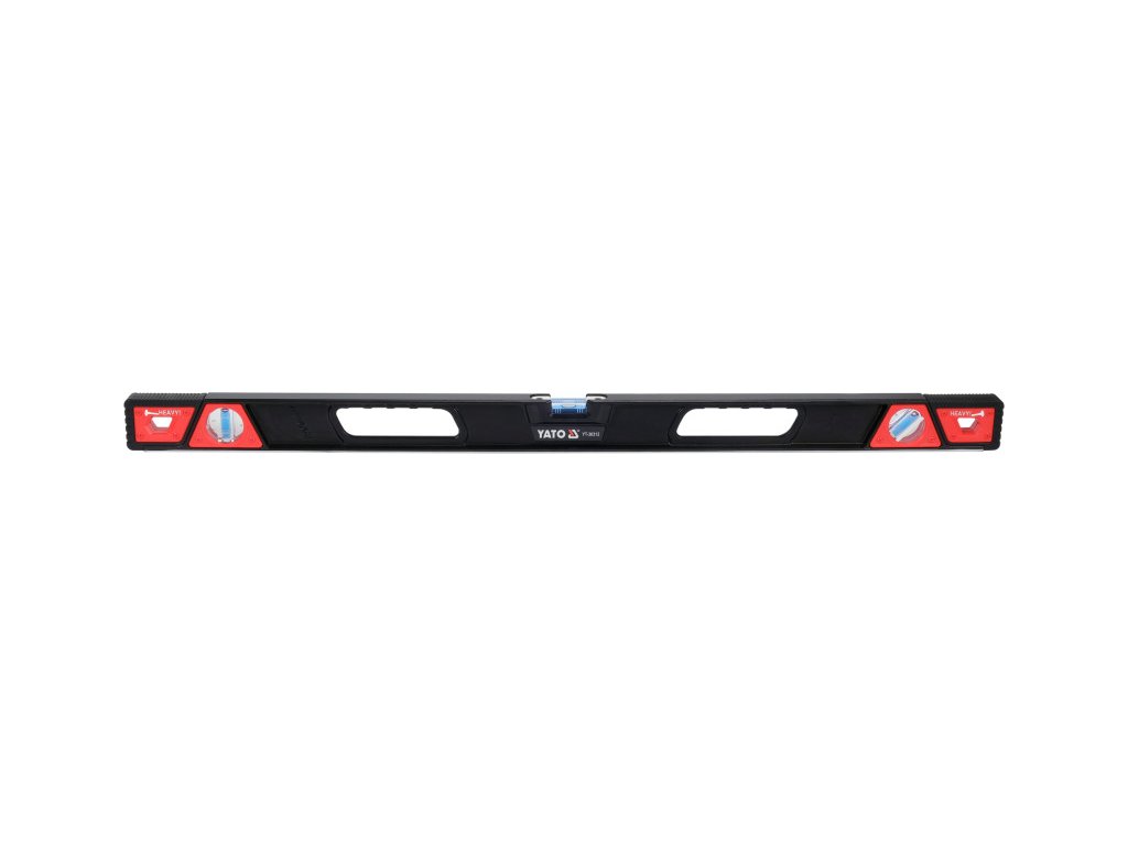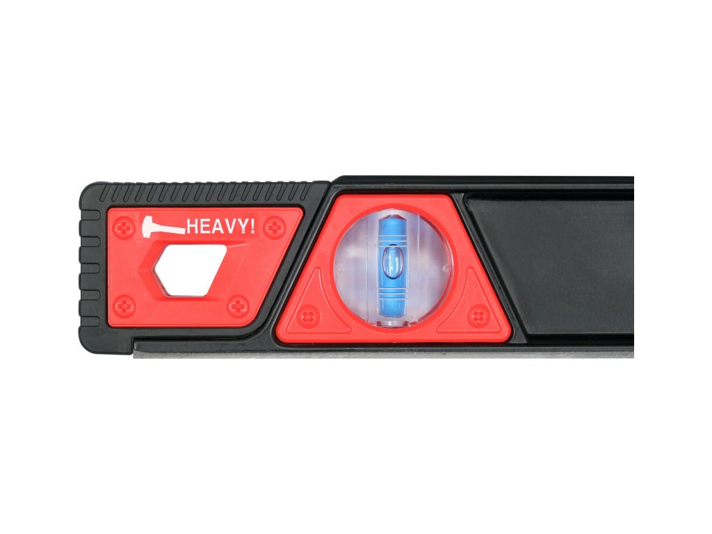 Robusztus, ütésálló alumínium lézer szintező. Két nagy fogantyú teszi könnyűvé a mérések végzését. A szintező végét rugalmas ütésálló ütközők védelmezik, lehetővé téve a kalapáccsal való ütést. A szintező három buborékkal van felszerelve: függőleges, vízszintes, 45 fokos. Az esztergált alapon 5 mágnes található.