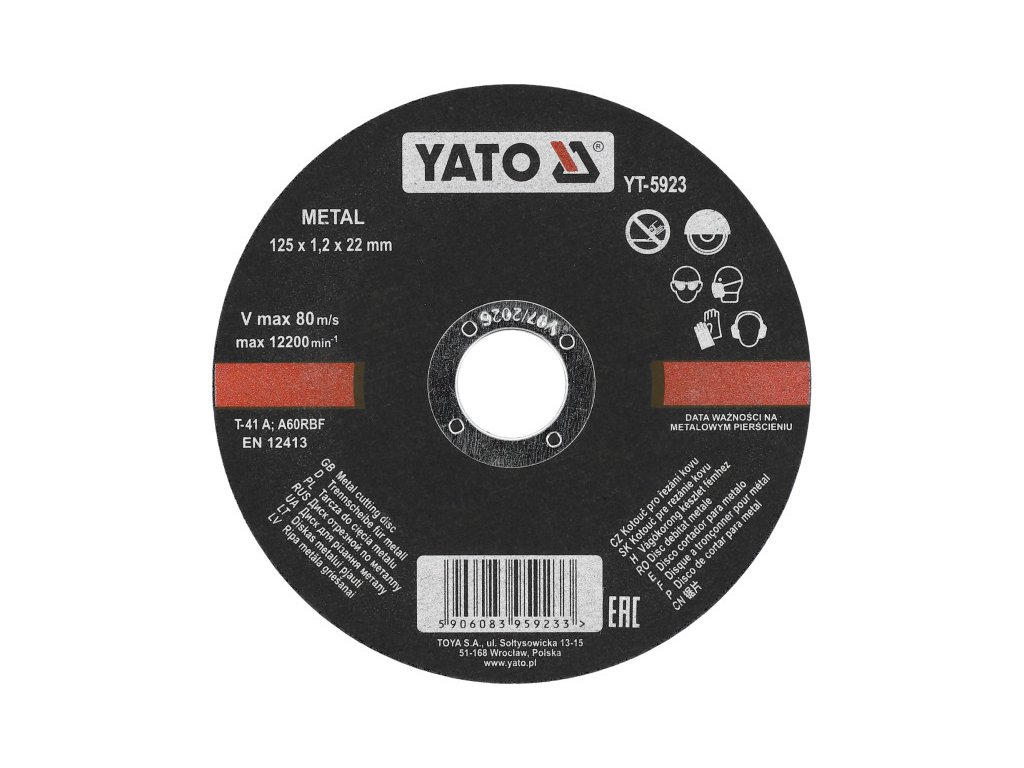 Fémvágó korong a YATO márkától, kiváló minőségű, megfelelő keménységű és szemcseméretű csiszolóanyagból készült.