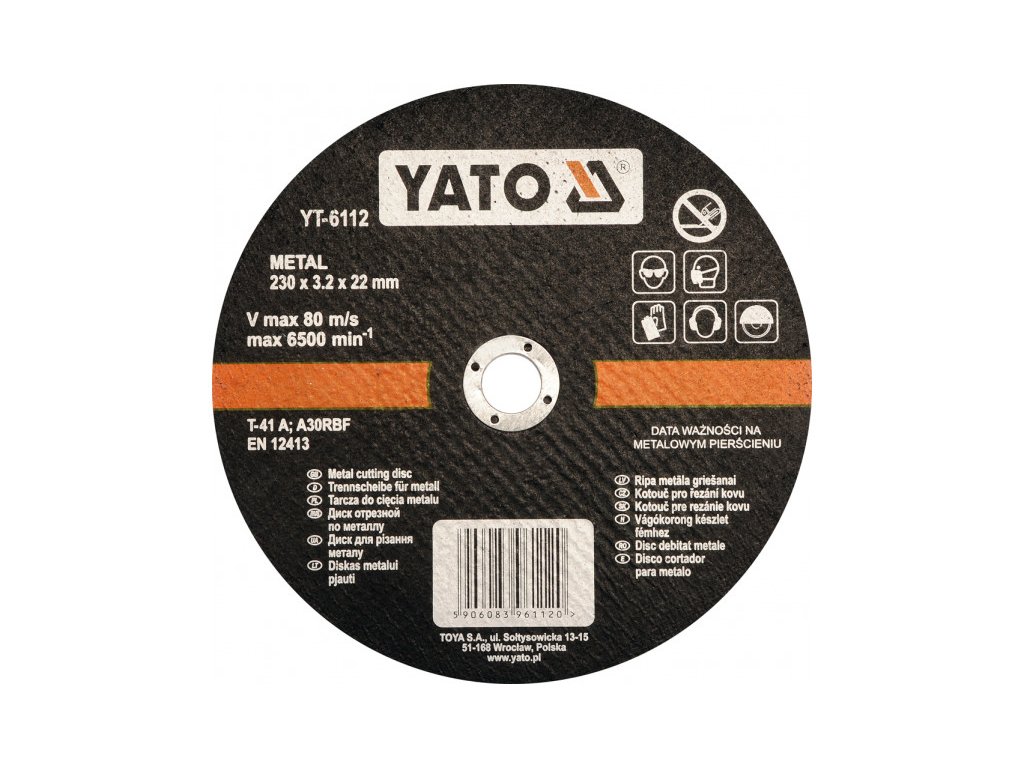 Fémvágó korong a YATO márkától, magas minőségű, megfelelő keménységű és szemcseméretű csiszolóanyagból készült.