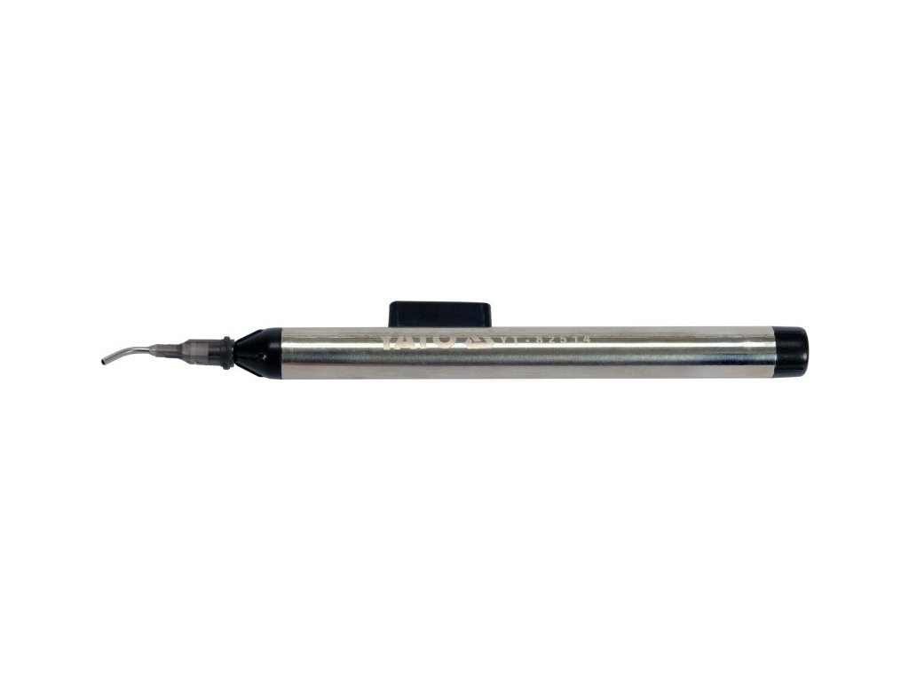 Prós fogó YT-82514, melyet elektronikai javítási munkálatokra terveztek. A mechanikusan gombnyomással létrehozott vákuumnak köszönhetően olyan BGA vagy SMD chipeket tudunk megfogni, melyeket forrasztani kívánunk, csipesz használata nélkül. A rozsdamentes acél tű és a három speciális szilikonból készült szívófej garantálja a magas hőmérsékletekkel szembeni ellenállóképességet.