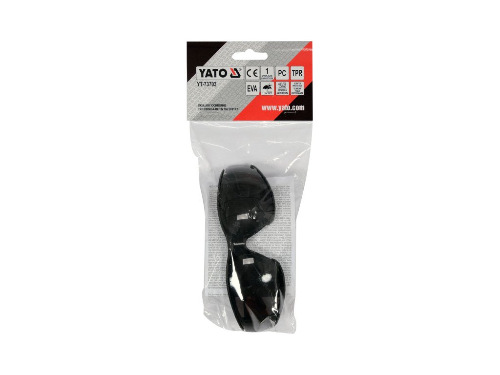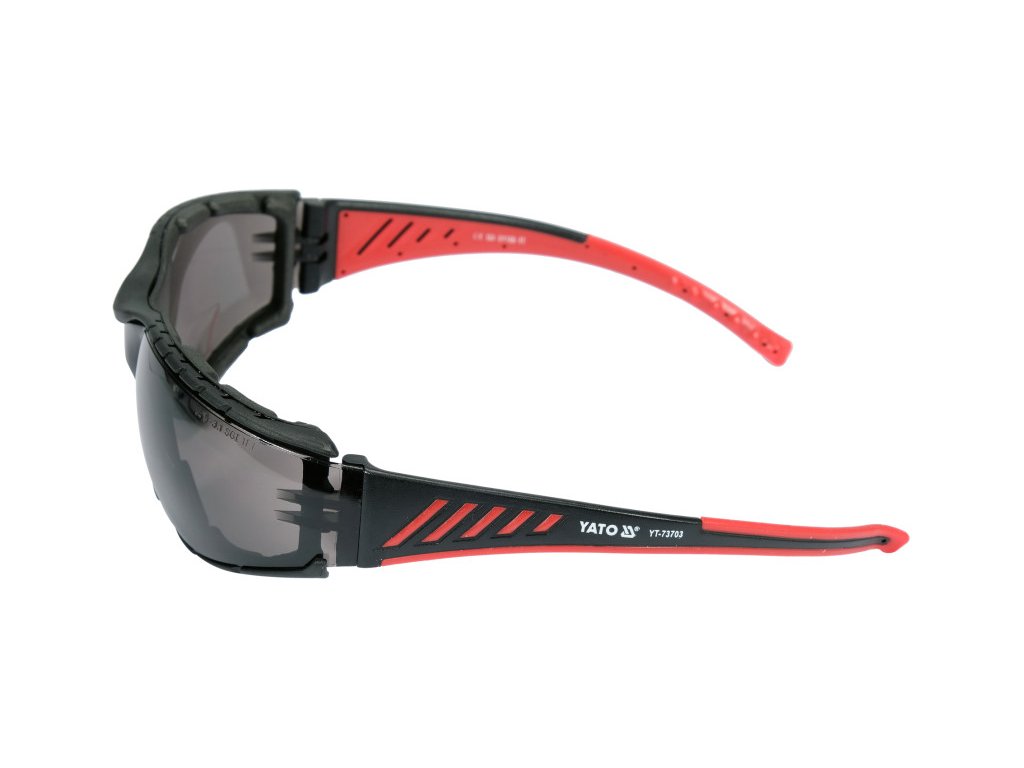 Védőszemüveg YT-73703 szürke lencsével, kényelmes keretben. A szürke színárnyalat, a sötétítés mértékétől függően, csökkenti a világos fény bejutását. A biztonsági szemüvegeknél ezt a típusú szűrőt napfény elleni védelemnek nevezik. A lencséket páramentesítő és karcolás elleni* bevonattal látták el. Az előbbi megakadályozza a szemüveg bepárásodását, az utóbbi pedig a túlzott karcolódás ellen védi. A legmagasabb optikai osztályú szemüvegek nem torzítják a képet, és védelmet nyújtanak a káros UV sugárzás ellen. A kereteket eltávolítható EVA hab kerettel látták el, ami csökkenti a szem körüli kemény elemekkel való érintkezést. Mindössze 31 grammot nyomó, lágy, rugalmas, csúszásmentes szárvégekkel ellátott szemüveg szinte észrevehetetlen a fejen.
