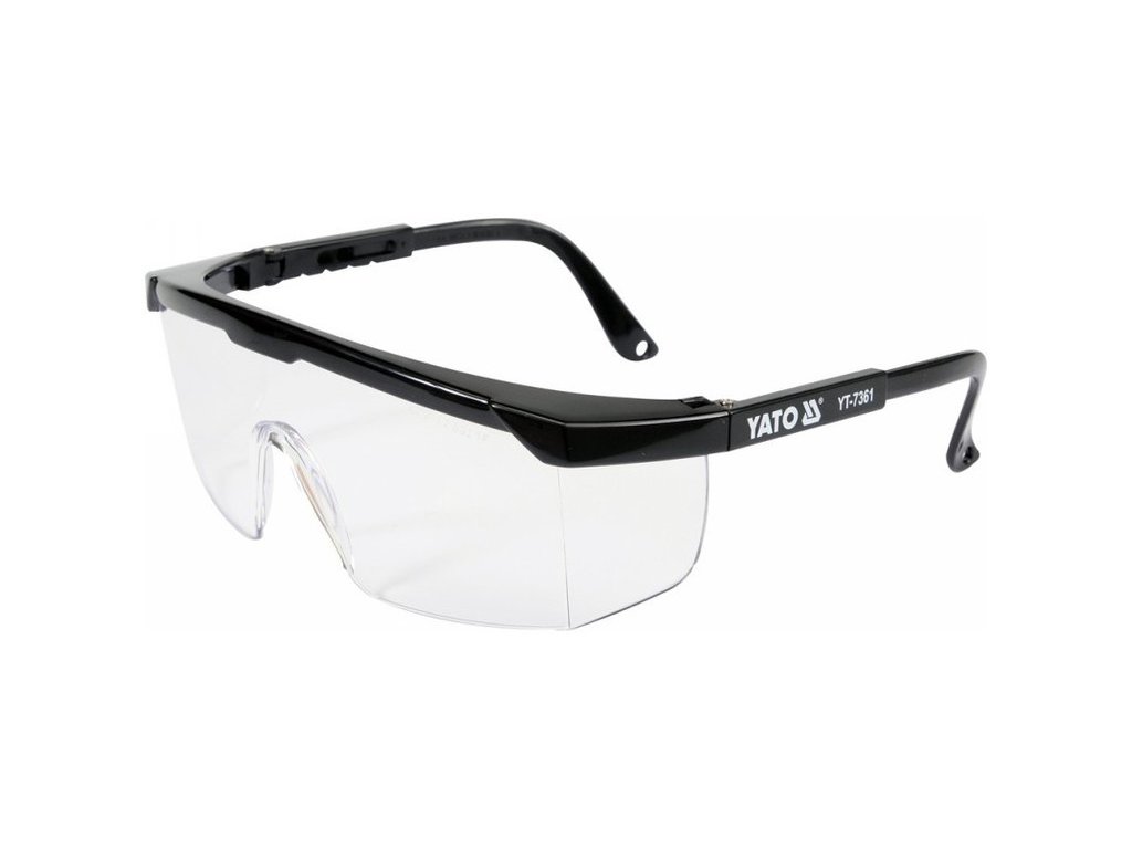Védőszemüveg YT-7361 népszerű tervezéssel, melyet kézi és gépi munkavégzés során, mint például csiszolás, fúrás, vésés, stb. a szem védelmére terveztek.