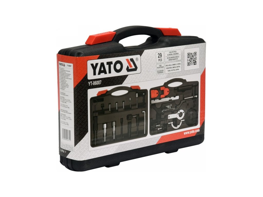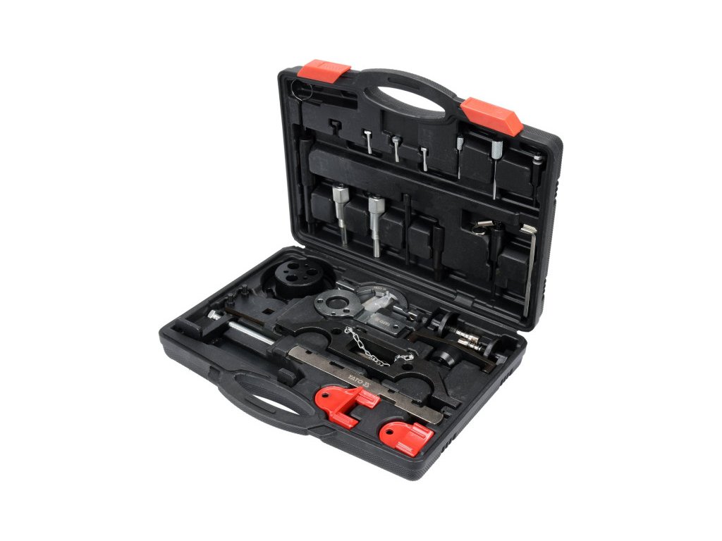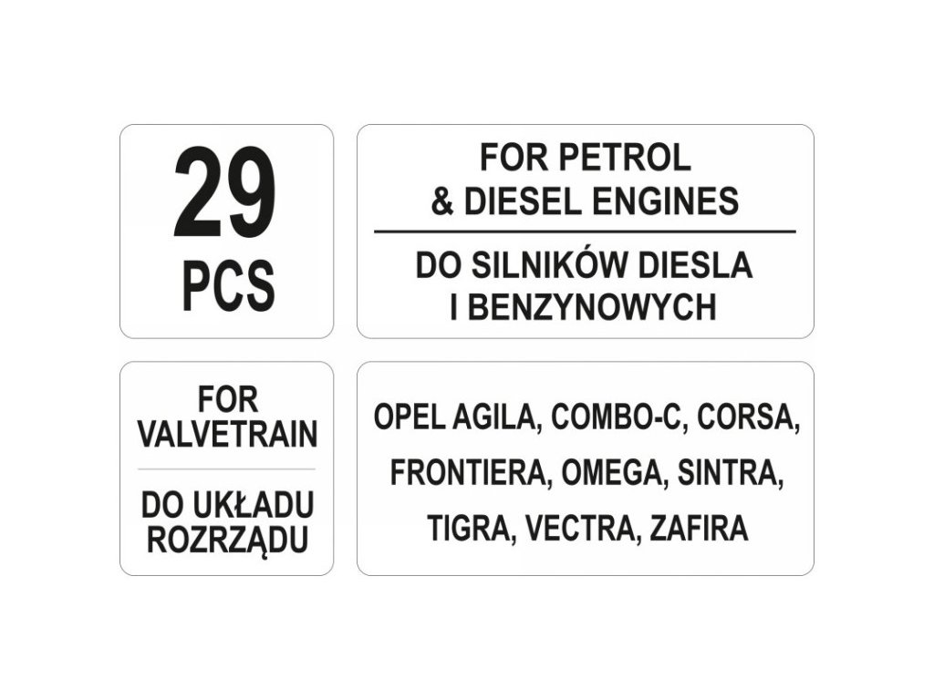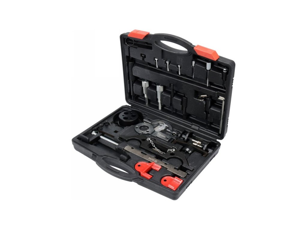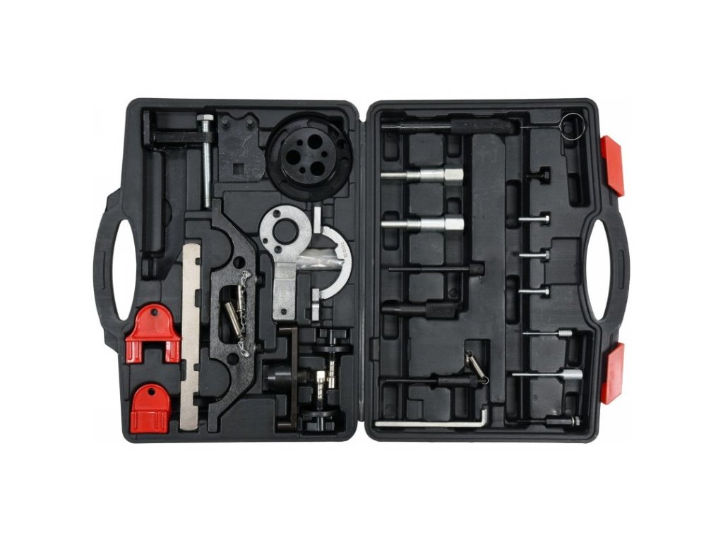 Professzionális 29 részes készlet, amelyet dízel- és benzinmotorok időzítésének beállítására és zárási műveleteire terveztek.