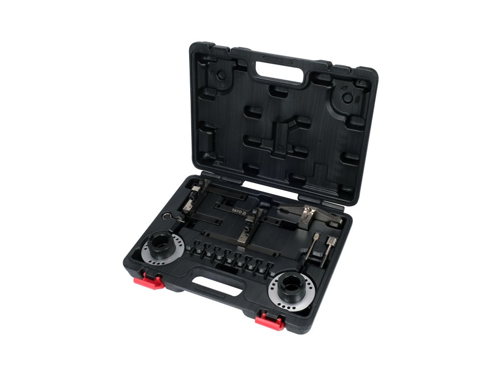 Időzítő zárókészlet népszerű Ford EcoBoost motorokhoz. Tartalmazza a beállításhoz és záráshoz, valamint az időzítő egységek helyzetbe hozásához szükséges szerszámokat.