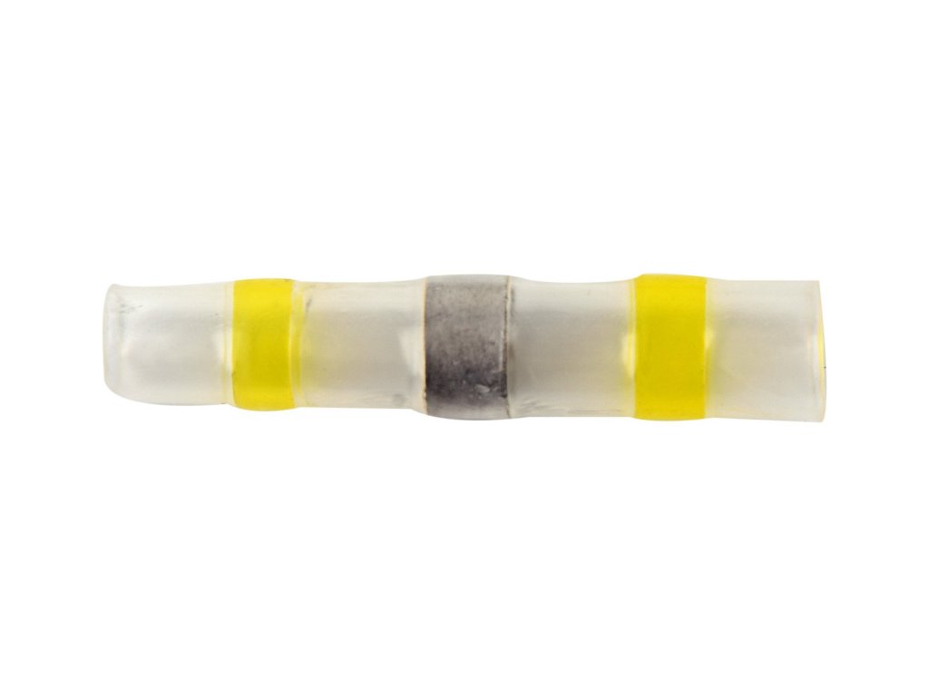 Átlátszó YT-81443 hőre zsugorodó cső tines gyűrűvel a közepén és két hőre aktiválódó ragasztógyűrűvel a szélein, ami további szigetelést biztosít a csatlakozásnál.