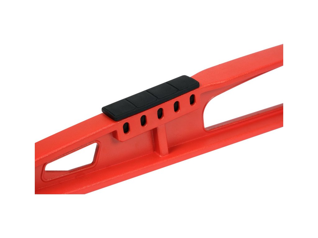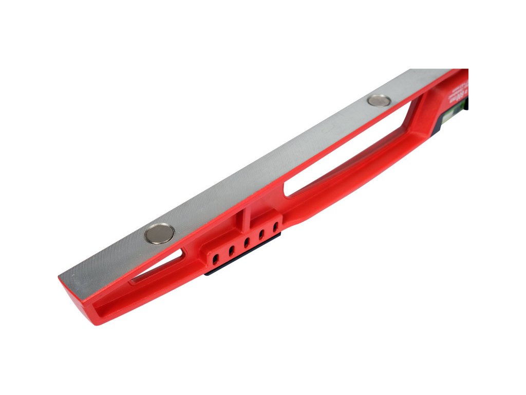 Ütésálló szintező, öntött alumíniumból készült. A profil nyílt szerkezetű, a falak kb. 5 mm vastagok. A függőleges és vízszintes libellák TPR borításban vannak elhelyezve. Két mező TPR betétekkel van ellátva a profil felső oldalán, amelyek a szintező ütögetésére szolgálnak a csempék szintezésekor.