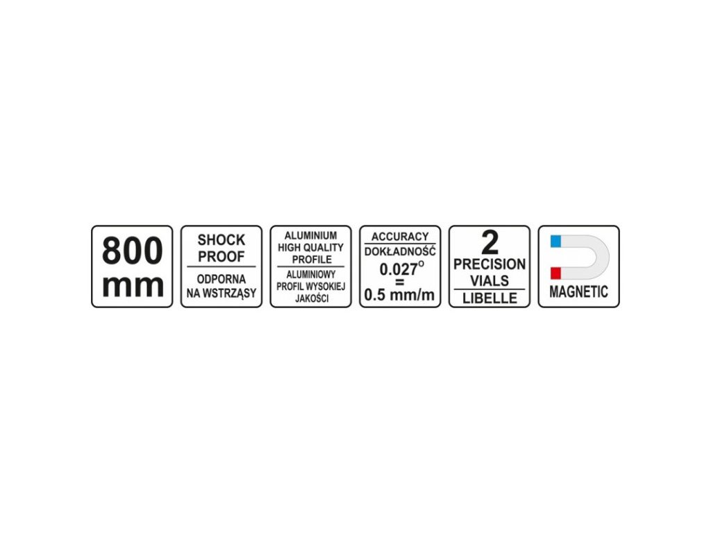 YATO Vodováha magnetická 2 úrovne 1 rukoväť 800 mm