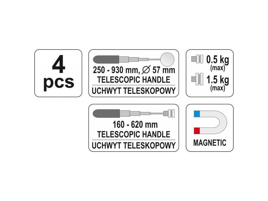 Súprava zrkadielka YATO 4 diely teleskopické (zrkadlo + magnetický snímač)